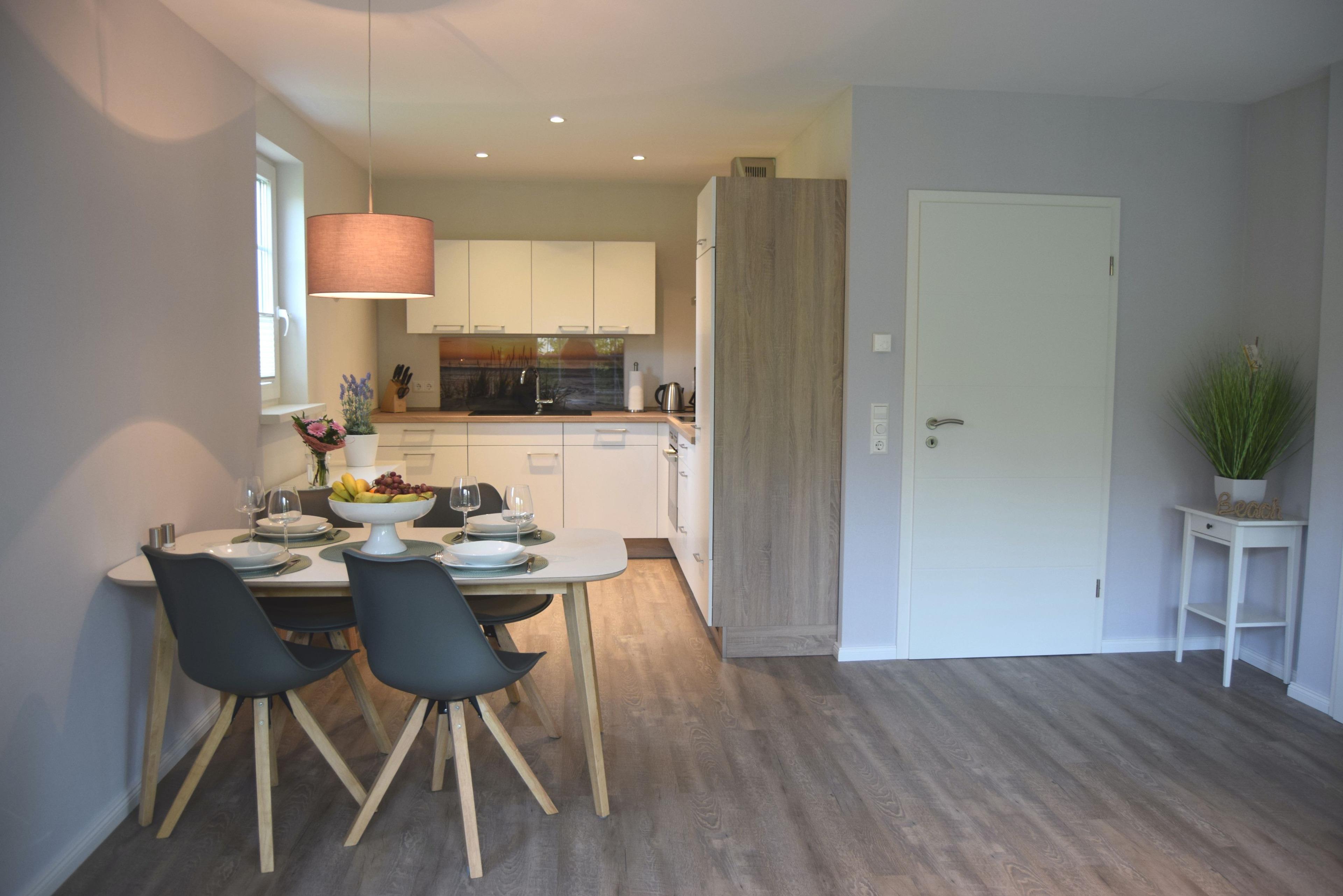 Das Ferienhaus befindet sich auf einem weitläufigem Grundstück, das einst eine Hofstelle war. Das große Wohnzimmer lädt zu geselligem Beisammensein ein. Hier wird gekocht, gegessen oder einfach nur faul auf der Couch gelegen. Die offene Küche lässt großen Spielraum für das Zaubern leckerer Speisen, die gleich gegenüber am Esstisch eingenommen werden können. Auf der Eckcouch lässt es sich nach dem Essen famos mit dem Buch in der Hand oder vor dem Fernseher faulenzen, während die Geschirrspülmaschine für Sie die Küchenarbeit erledigt. Die zwei separaten Schlafzimmer verfügen über je ein Doppelbett und einen großen Einbauschrank sowie Kommoden mit viel Stauraum. In den zwei hellen Badezimmern erwartet Sie u.a. eine geräumige Dusche sowie eine Whirlpoolwanne, die zur Entspannung einlädt.