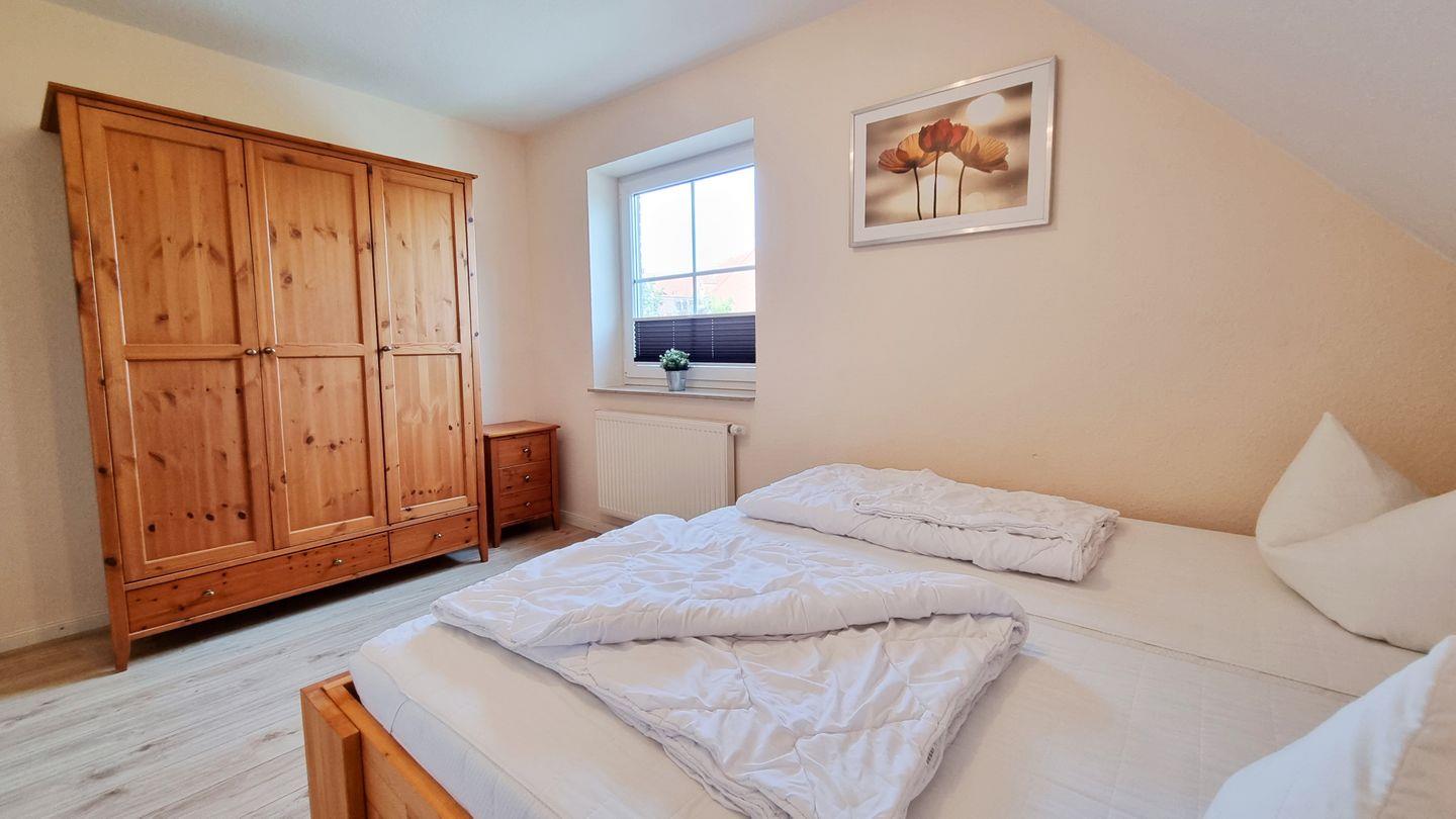 Schlafzimmer I: Doppelbett (180x200cm) / Schrank / Plissee / Fliegengitter