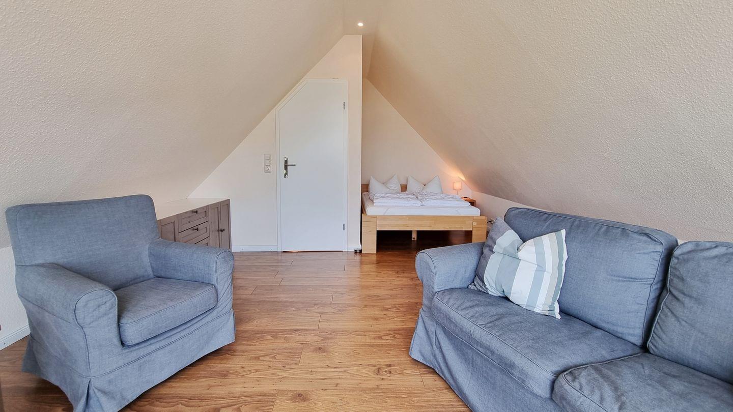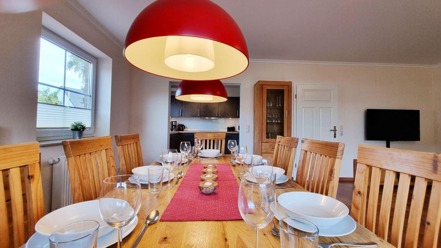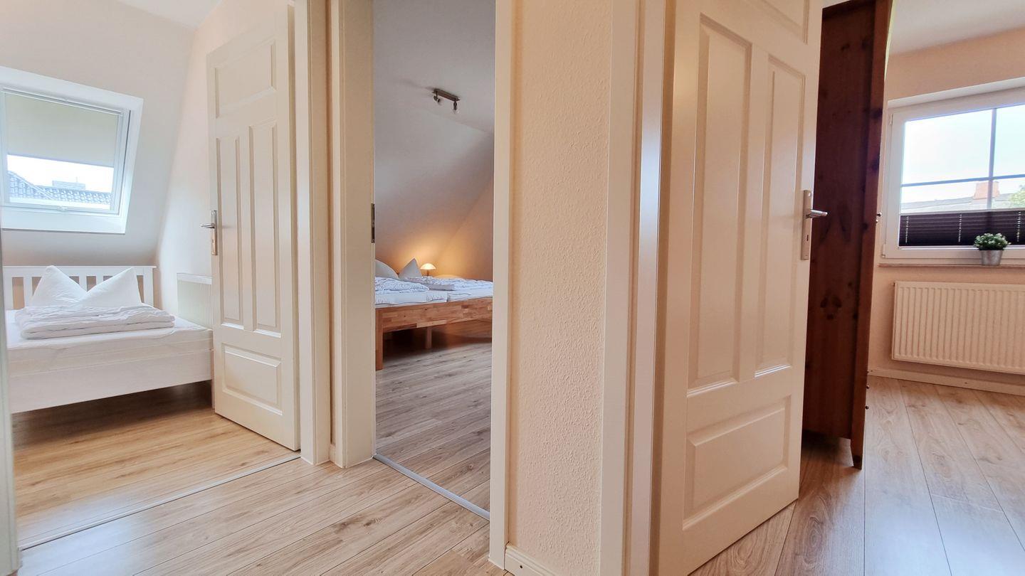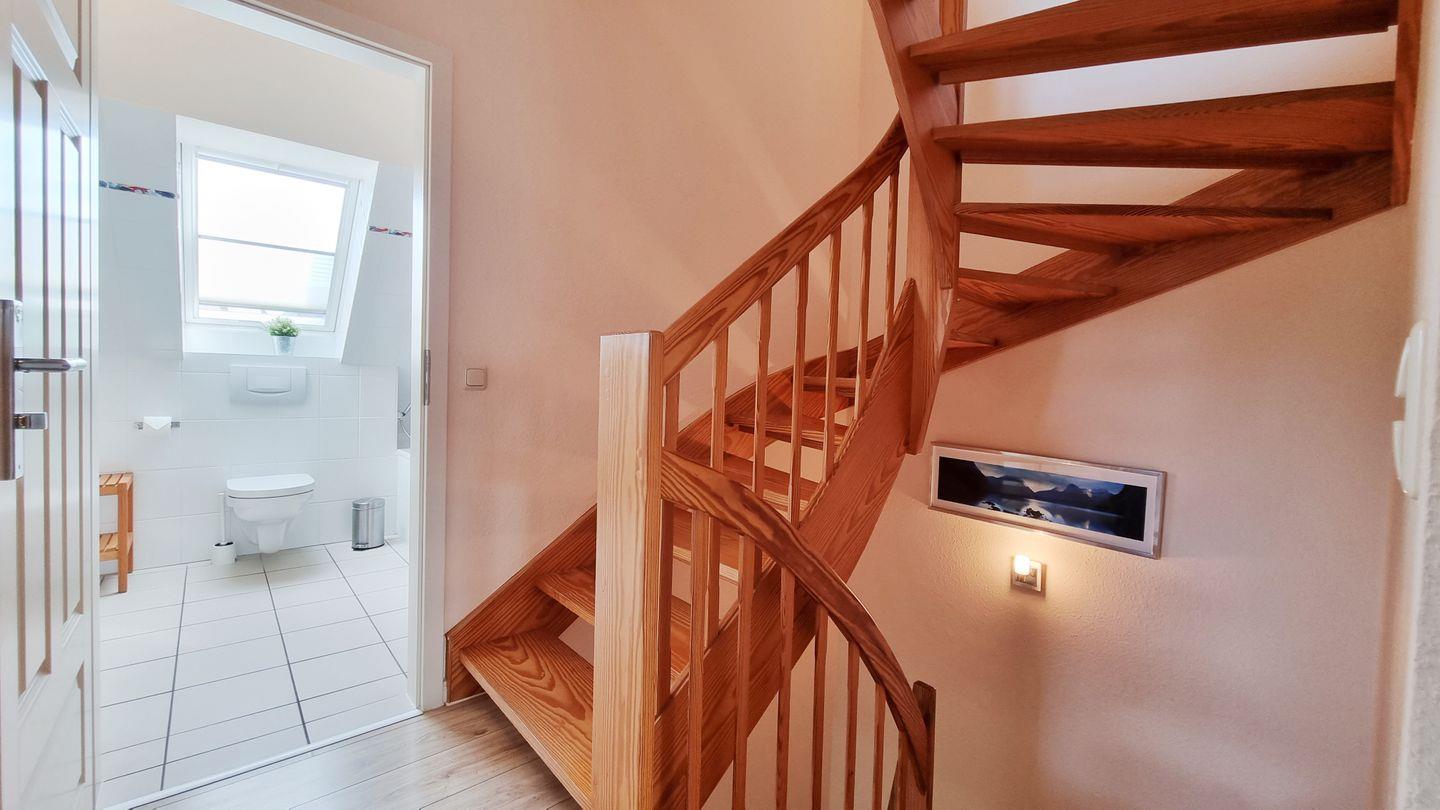 Das zauberhafte Domizil besticht durch seine außergewöhnlich großzügigen Räumlichkeiten. Im Erdgeschoss befindet sich neben einem Wohn-Essbereich zum Wohlfühlen, die offene Küche, sowie ein Duschbad, Flur und Abstellraum. Über eine Kieferholztreppe geht es in den ersten Stock, in dem sich 3 der insgesamt 4 lichtdurchfluteten Schlafzimmer befinden. Ein weiteres, großes Badezimmer mit Dusche und Badewanne ist hier ebenfalls vorhanden. Eine Etage weiter und die Galerie mit Blick auf die Ostsee ist erreicht. Zusätzlich zum Doppelbett, finden unsere Gäste hier einen Sofabereich mit Sessel und Fernseher, zum Entspannen und bei offenem Fenster dem Meeresrauschen lauschen.