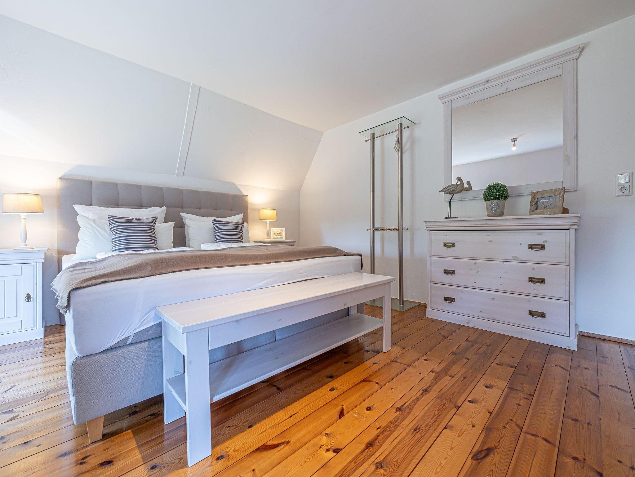 Im Obergeschoss:Schlafzimmer mit hochwertigem Boxspringbett (180x180) und Fußbodenheizung; Bettwäsche inklusive.