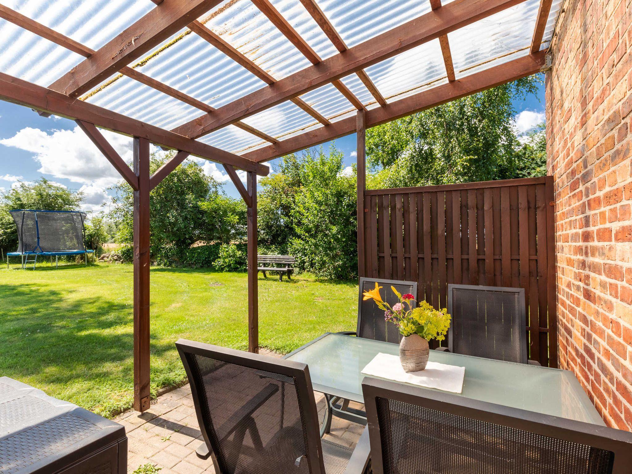 Das naturverbundene Urlaubsdomizil wurde sogar als schwalbenfreundliches Ferienhaus ausgezeichnet. Der große Garten lädt Familien und Kinder zum Spielen, Toben und Landwirtschaft Entdecken an der Ostsee ein. Auf dem Hof leben die verschmusten Katzen, Kaninchen, Enten und jede Menge Hühner. Frischer kann man sein Frühstücksei im Urlaub nicht genießen. Gern darf von dem frischen Obst und Gemüse auf dem Hof genascht werden.