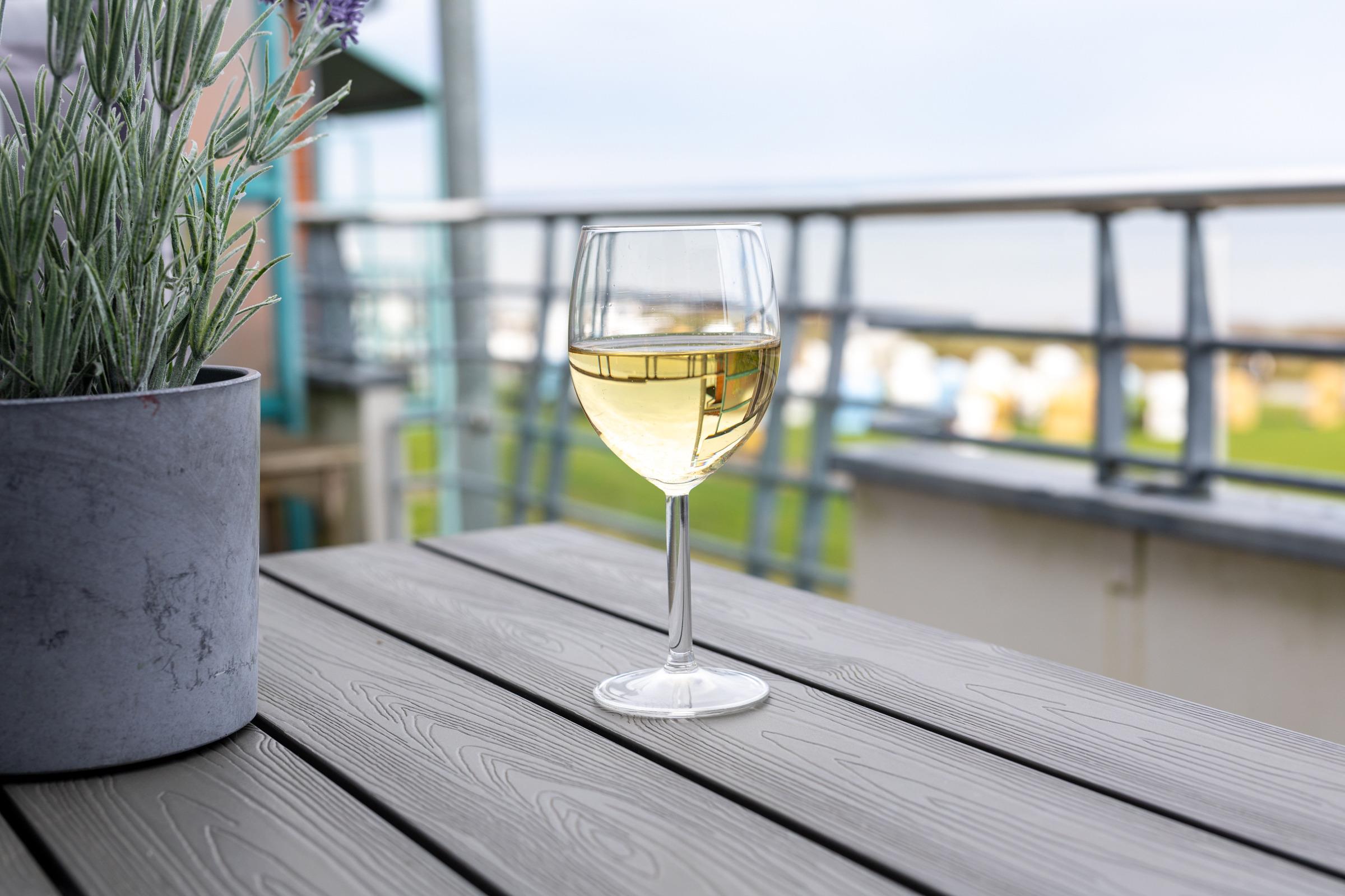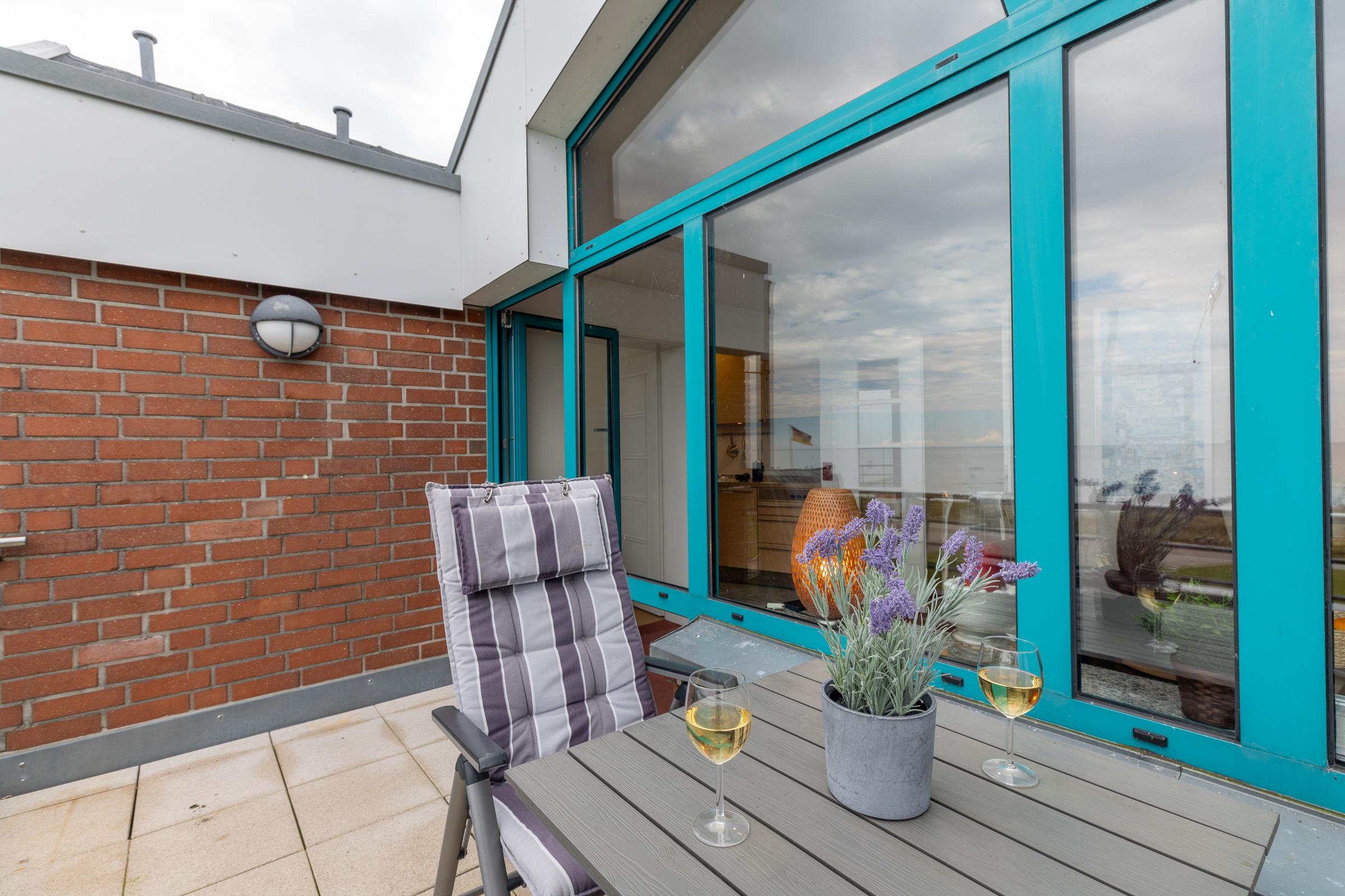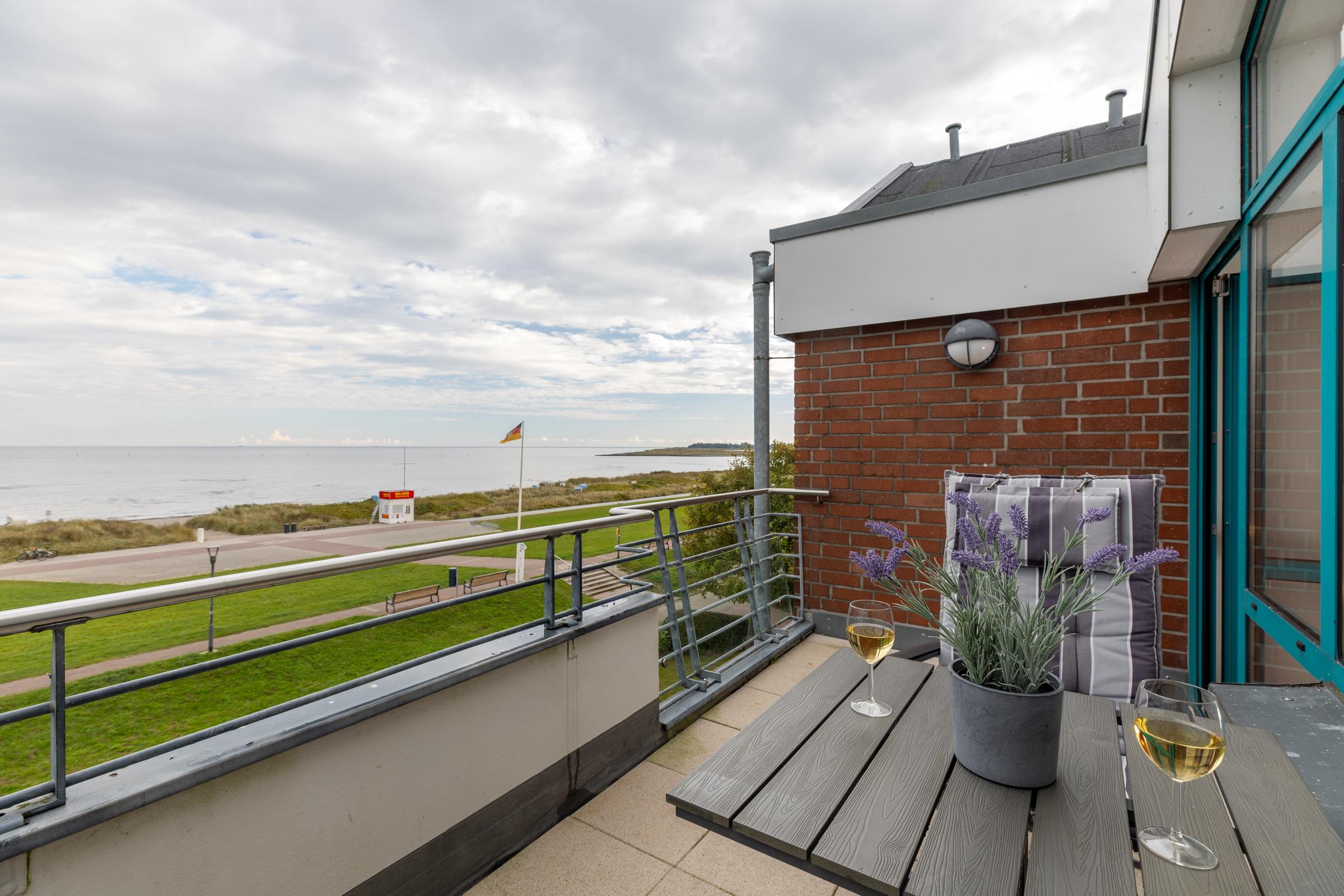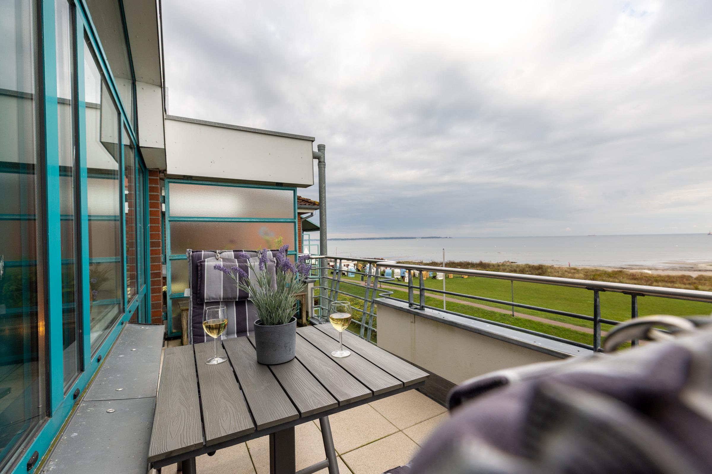 Moderne 2-Zimmer-Ferienwohnung mit Balkon und Ostseeblick in Stein, ideal für einen erholsamen Urlaub am Strand.