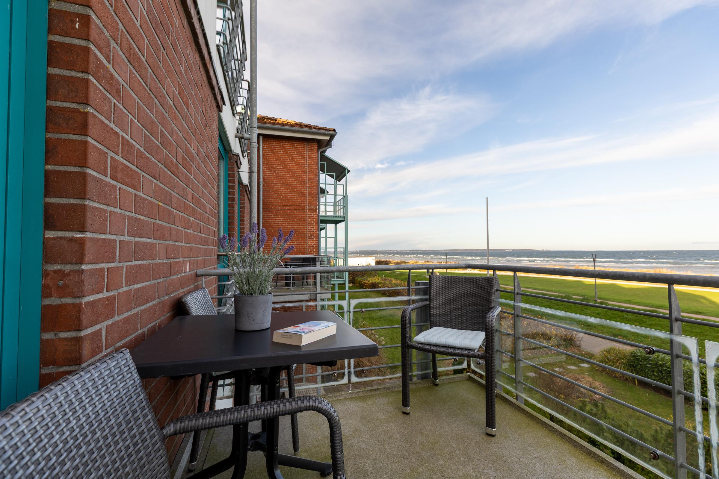 Gemütliche Ferienwohnung Seeadler mit Balkon und Meerblick in Stein, direkt an der Küste, ideal für entspannte Tage zu zweit.
