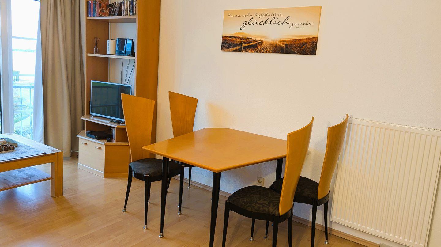 Die Wohnung ist gemütlich geschnitten und bietet alles, was du für entspannte Urlaubstage brauchst. Teils älter, aber gepflegt, zeigt sich die Möblierung mit persönlichem Charakter – funktional eingerichtet und liebevoll ergänzt. Besonders hervorzuheben ist die Lage: Der Blick auf die Ostsee prägt die Atmosphäre und durchflutet die Räume mit maritimer Weite.