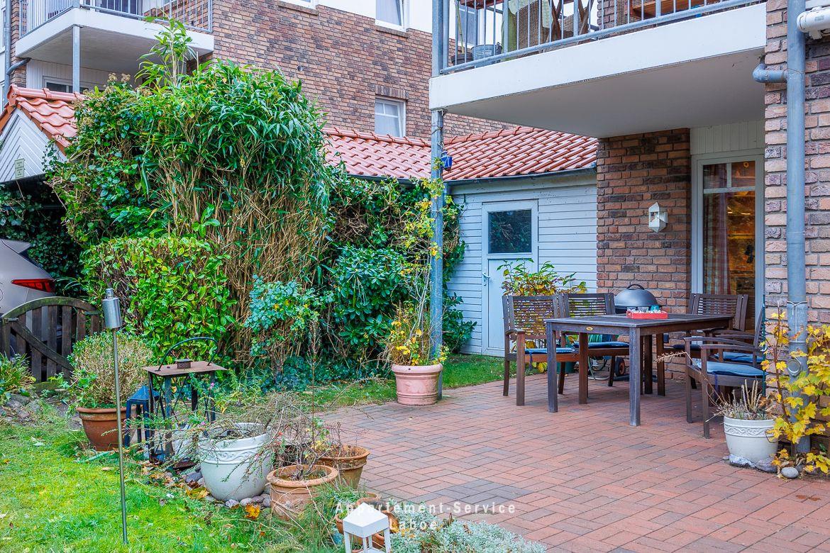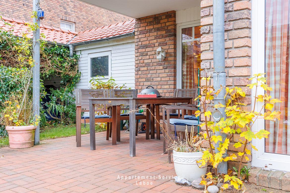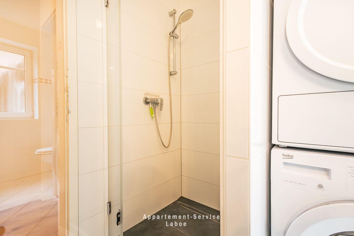 Das Badezimmer ist funktional und sauber, ausgestattet mit Dusche und WC. Besonders schön ist die möblierte Terrasse, auf der du den vorhandenen Elektrogrill nutzen kannst. Im angrenzenden Garten lädt eine Sitzecke zum Verweilen ein.