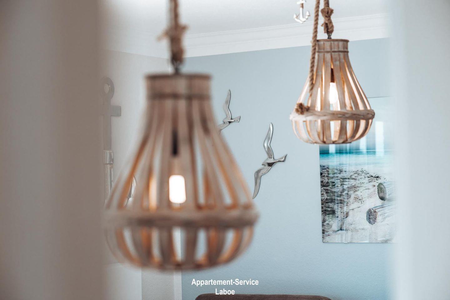 Abgerundet wird das Meer-Ambiente durch das gemütliche Licht und die maritime Dekoration.