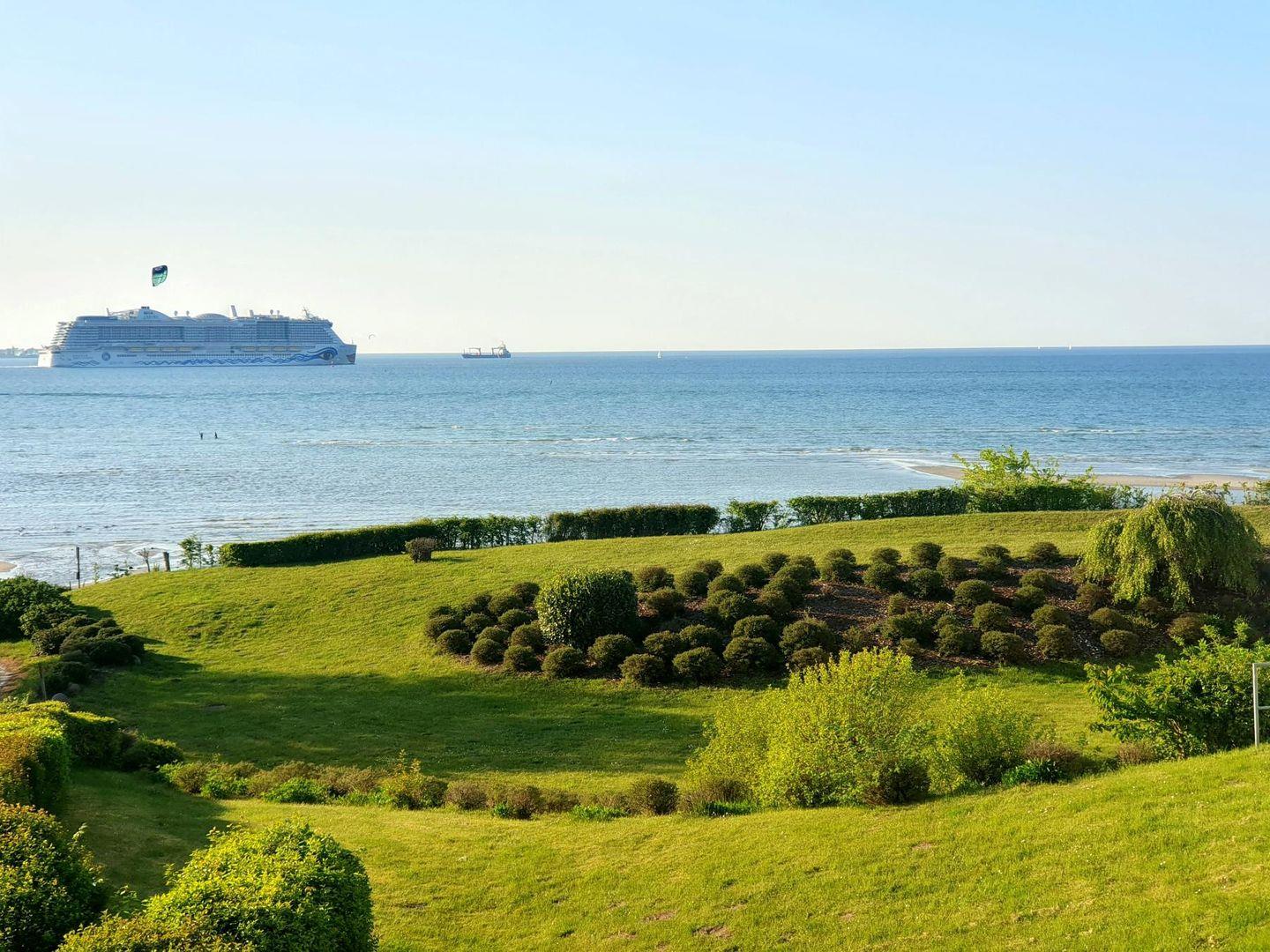 Erblicke mit dem Kieker (Fernglas) auch die vorbeifahrenden Boote und Schiffe aus aller Welt, deren Route direkt am Grundstück vorbeiführt.