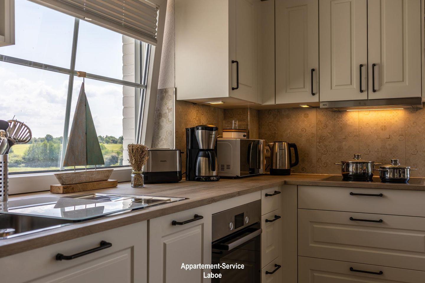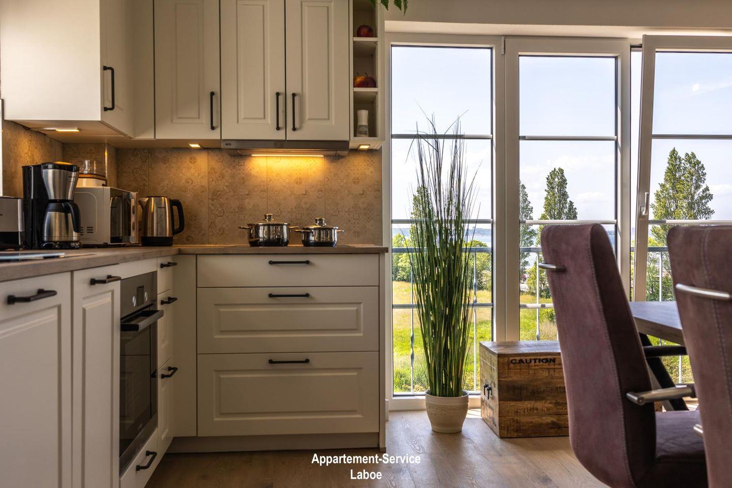 Im Urlaub ist Zeit für kreatives Kochen und du kannst währenddessen direkt auf die Ostsee schauen. Die edle Wohnküche ist perfekt ausgestattet und lässt keine Wünsche offen. Sie schließt sich dem Essbereich an.
