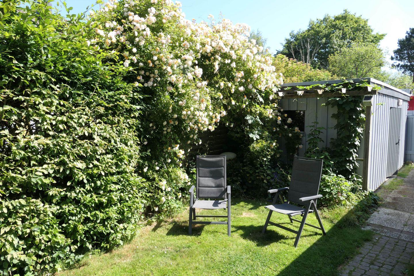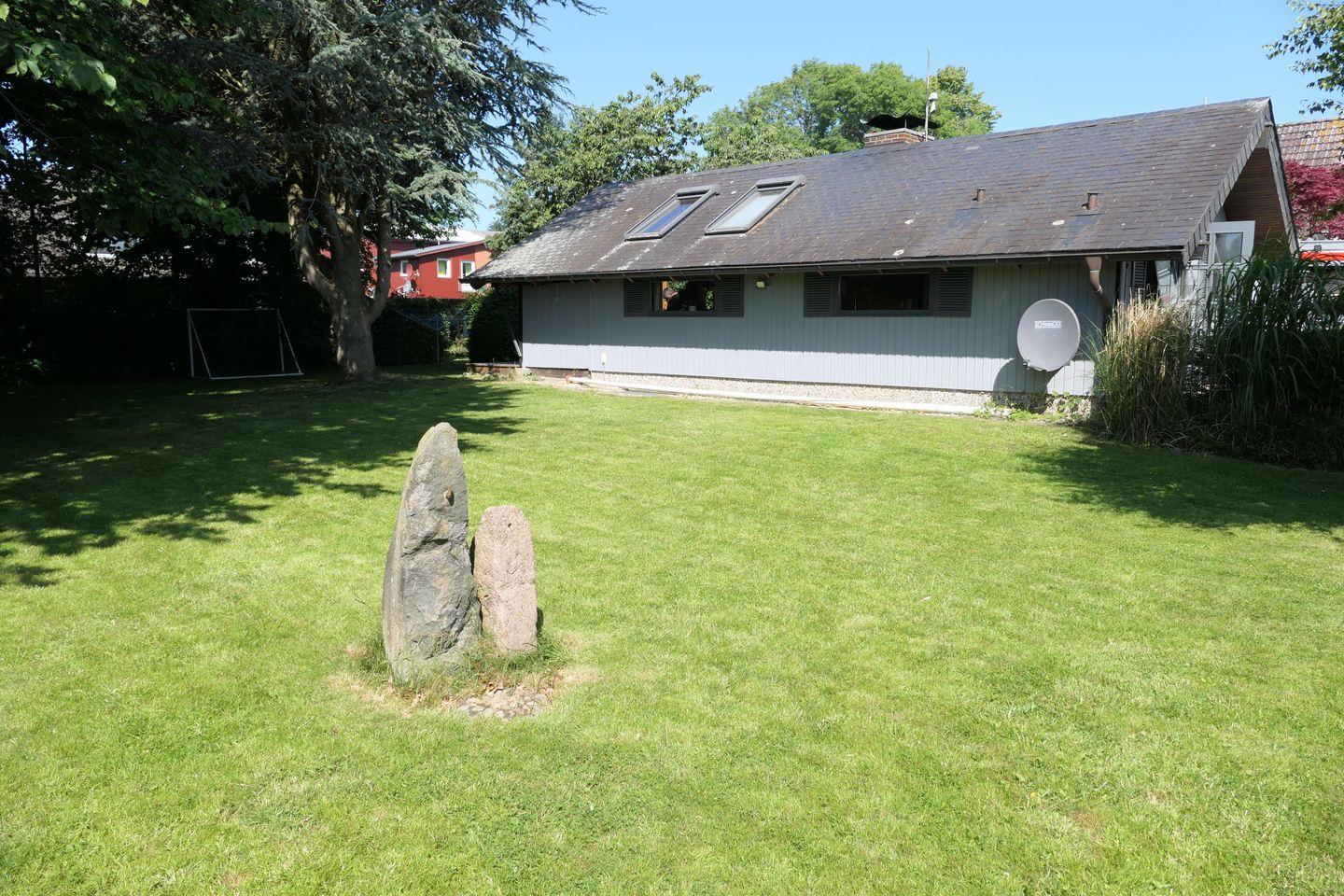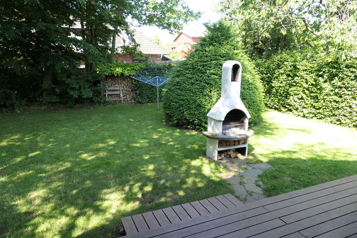 In dem ca. 1.000 m² großen, geschmackvoll angelegten, komplett eingezäunten Garten mit altem Baumbestand und Sträuchern lässt es sich herrlich verweilen.