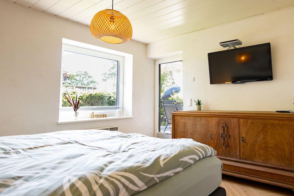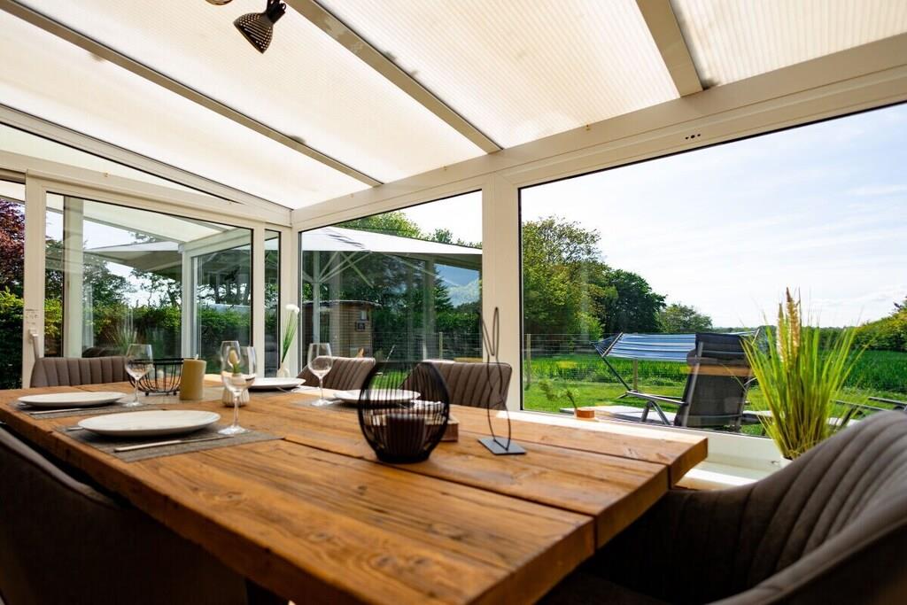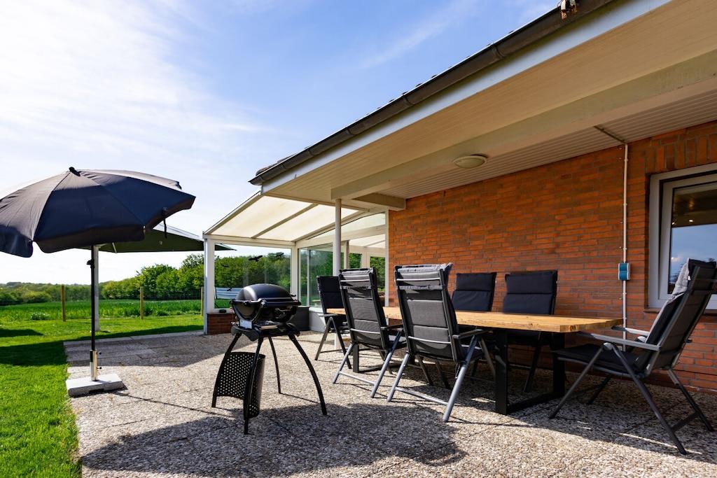 Das traumhafte Ferienhaus mit eingezäuntem (110cm) Grundstück, 800m von der Ostsee entfernt, ist perfekt für die Familie mit Hund und Fahrradfahrer. Das Ferienhaus steht zur allein Nutzung zur Verfügung und hat einen einzigartigen, endlosen Blick über das Angelieter Land. Tolle Tage und Sonnenuntergänge stehen mit der Familie im Garten bevor. Das Ferienhaus ist 85m² groß, hat zwei Schlafzimmer, ein tolles Bad mit Regenfalldusche und eine großzügiges Wohn- Esszimmer mit schönem Kamin. Des weiteren gibt es einen traumhaften ca. 20m² großen Wintergarten der direkt an das Wohnzimmer und die Terrasse angeschlossen ist. Auf der Terrasse und im Garten ist durch Süd- Westausrichtung den ganzen Tag die Sonne zu spüren.