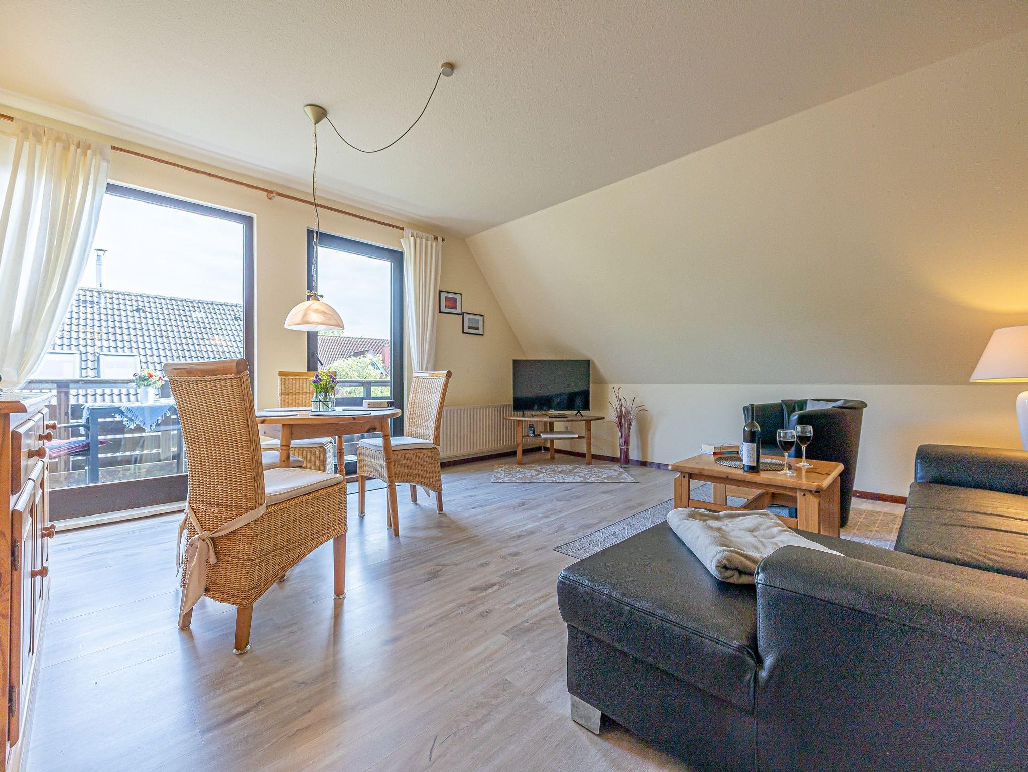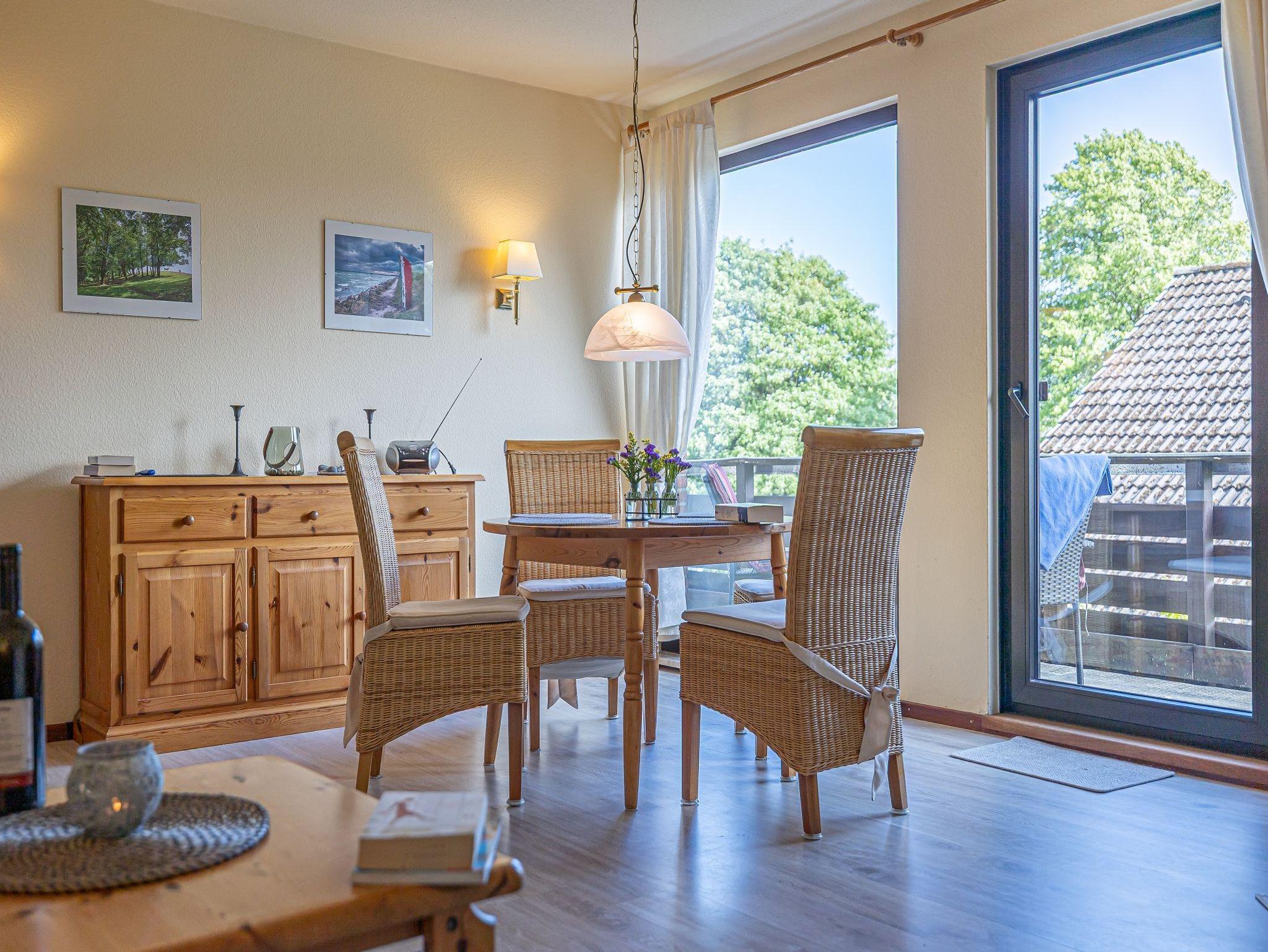 Willkommen in der sonnigen Ferienwohnung Strandweg, denn genau von hier können Sie den Weg zum nähen Strand sehen. Ein kleiner Balkon lädt zum Verweilen ein. Vom Großzügigen Flur aus schließt sich das helle Wohnzimmer an mit TV-Gerät und Radio. Hier können Sie an dem Esstisch Ihre Mahlzeiten einnehmen. Eine große Couch lädt zum Ausruhen und entspannen ein. Nebenan ist der Schlafraum mit Doppelbett und Wäscheschrank. Auch dieser Raum hat ein großes Fenster. In der kleinen Küche steht ein Backofen, Mikrowelle und Kühlschrank. Des Weiteren ist alles vorhanden zum Kochen und zubereiten Ihrer Speisen. Im anschließenden Bad, befindet sich eine Dusche und das WC. Hier ist ein Fenster für angenehmes Tageslicht. Die Küche und das Bad sind gefliest, die anderen Räume haben Teppich Belag.