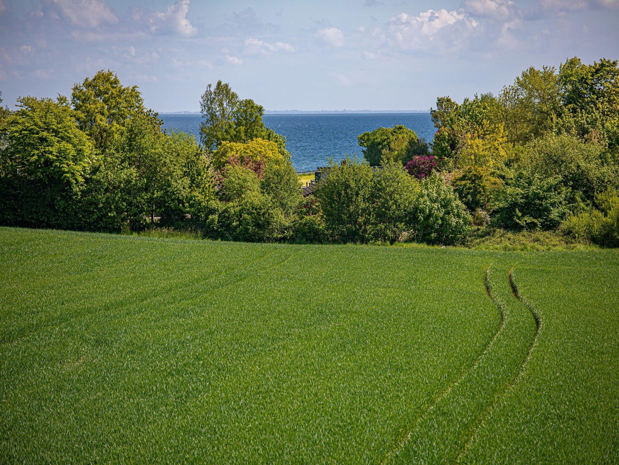 Das Dorf ist eingebettet in Wiesen und Felder, begrenzt auf ganzer Länge von der Ostsee.