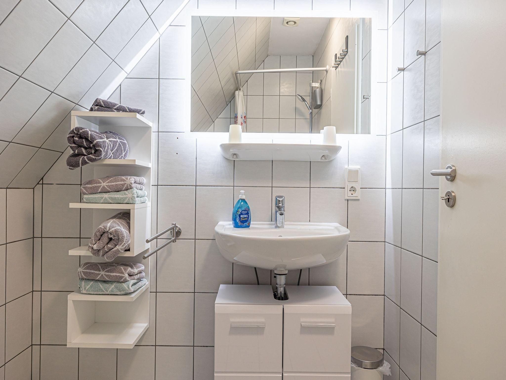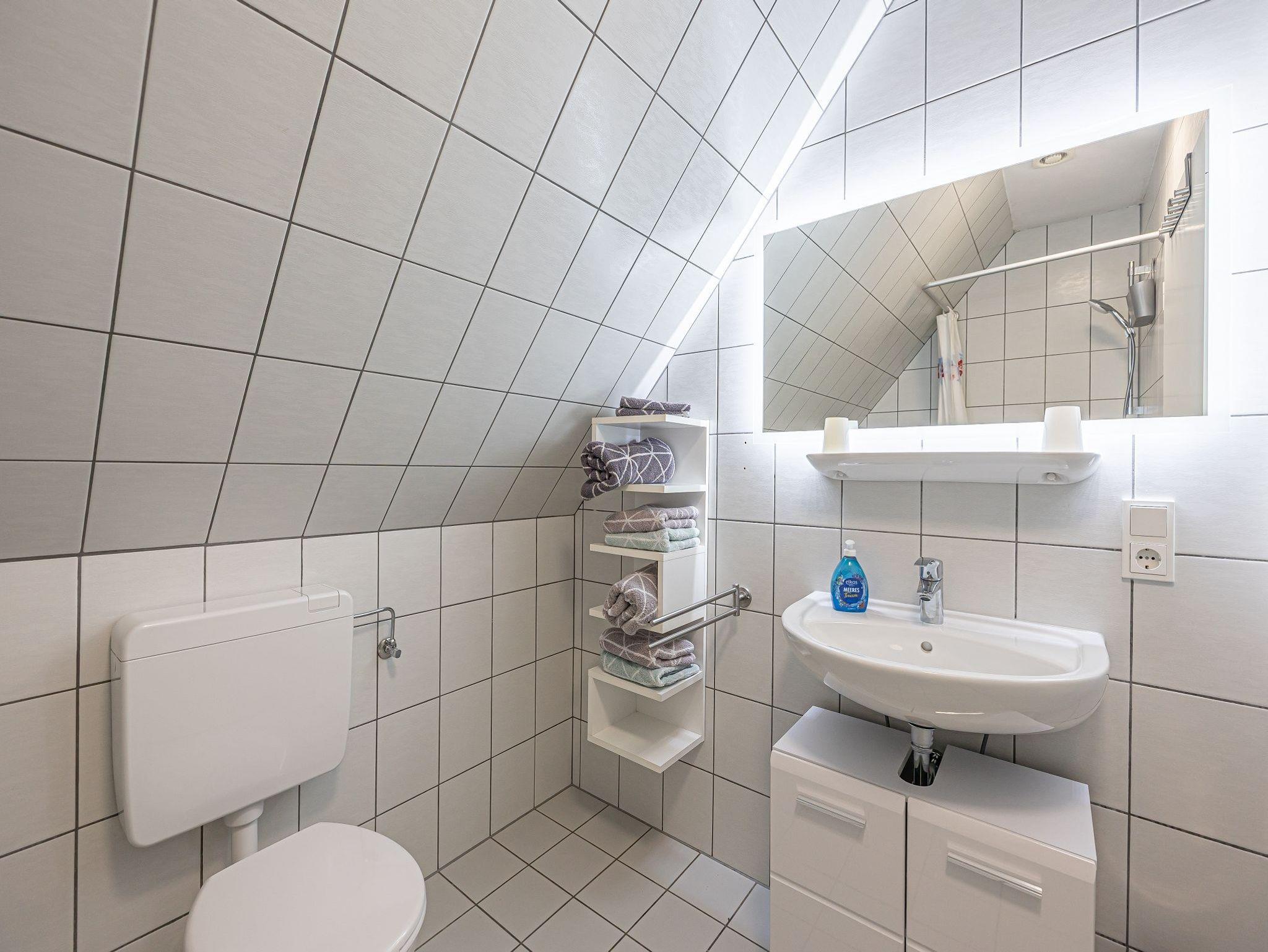 Auch das Duschbad mit WC, Fön und Waschbecken ist auf dieser Ebene.