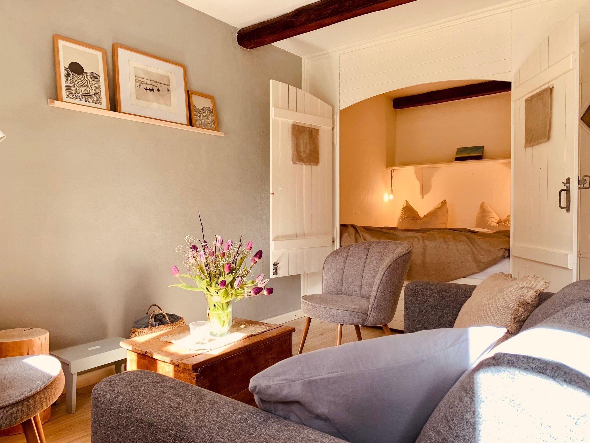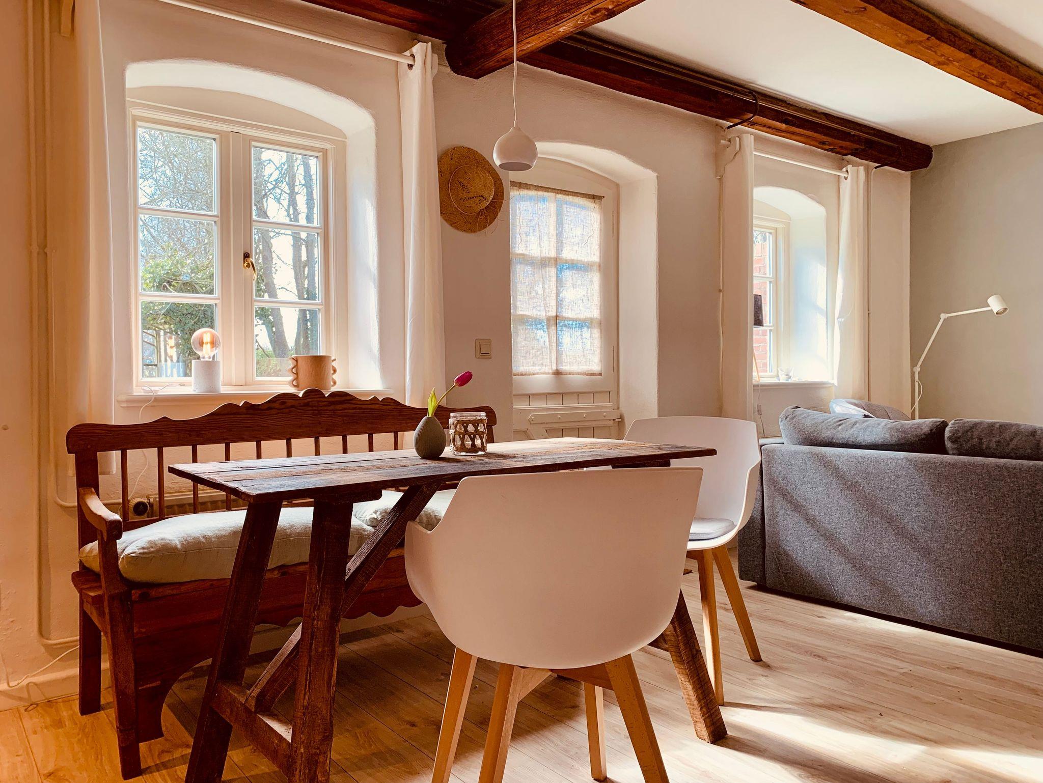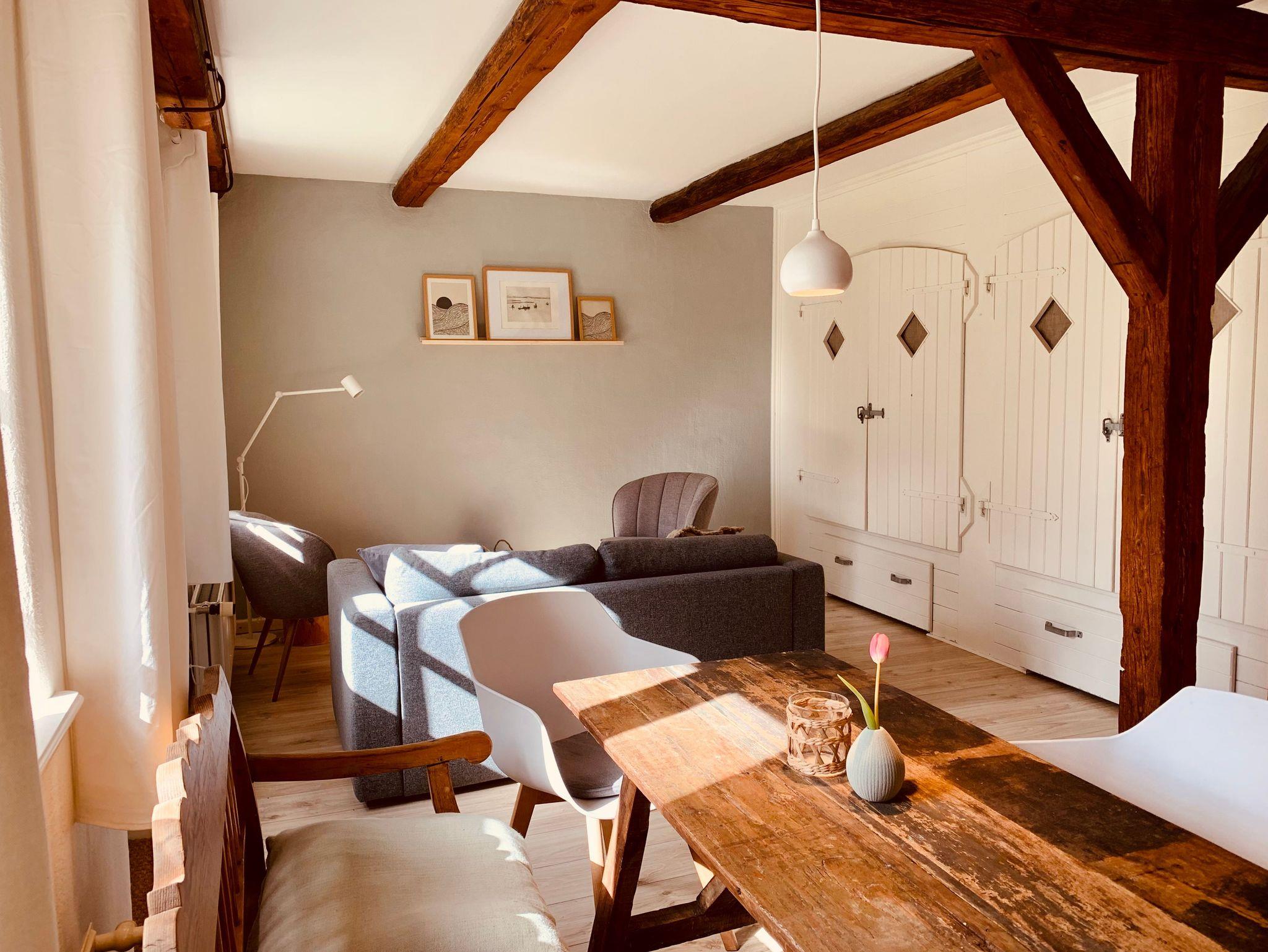 Die Ferienwohnung Een befindet sich im Erdgeschoss der ausgbauten Scheune und ist liebevoll in einem individuellen MIx aus Modern und Antik gestaltet.