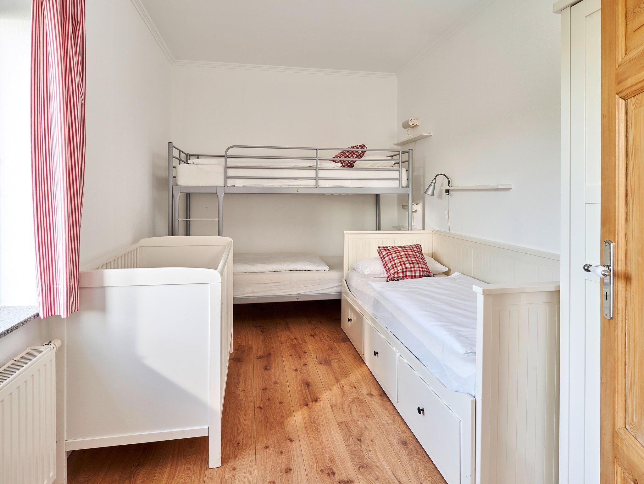 • Schlafzimmer mit Ausziehbett und Etagenbett; Bettwäsche inklusive