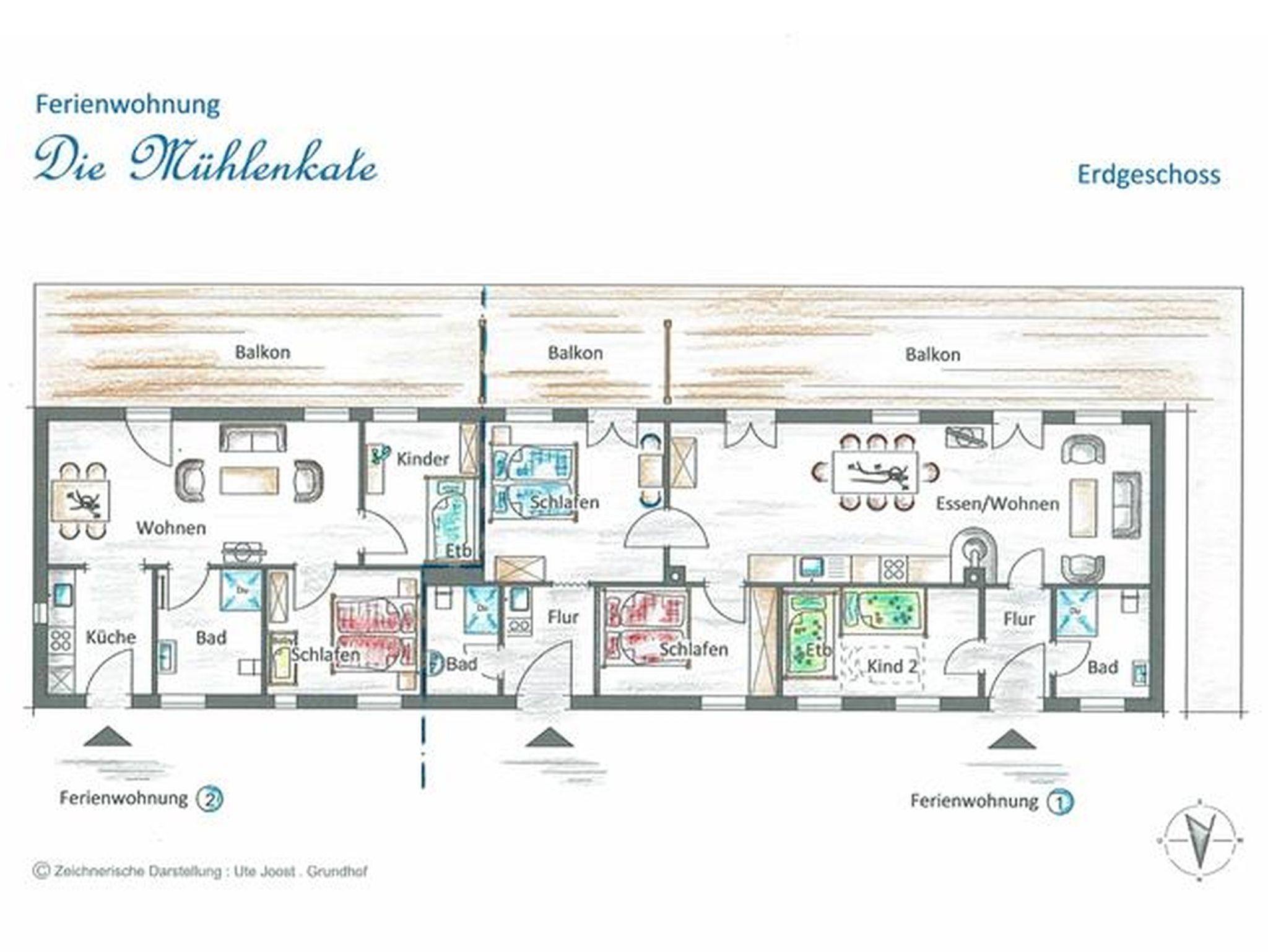 Die ebenerdige Ferienwohnung Mühlenkate I für bis zu 8 Personen liegt ca. 200 Meter vom Gut entfernt nahe der ehemaligen Wassermühle. Die Wohnung ist im charmanten Landhausstil gestaltet.