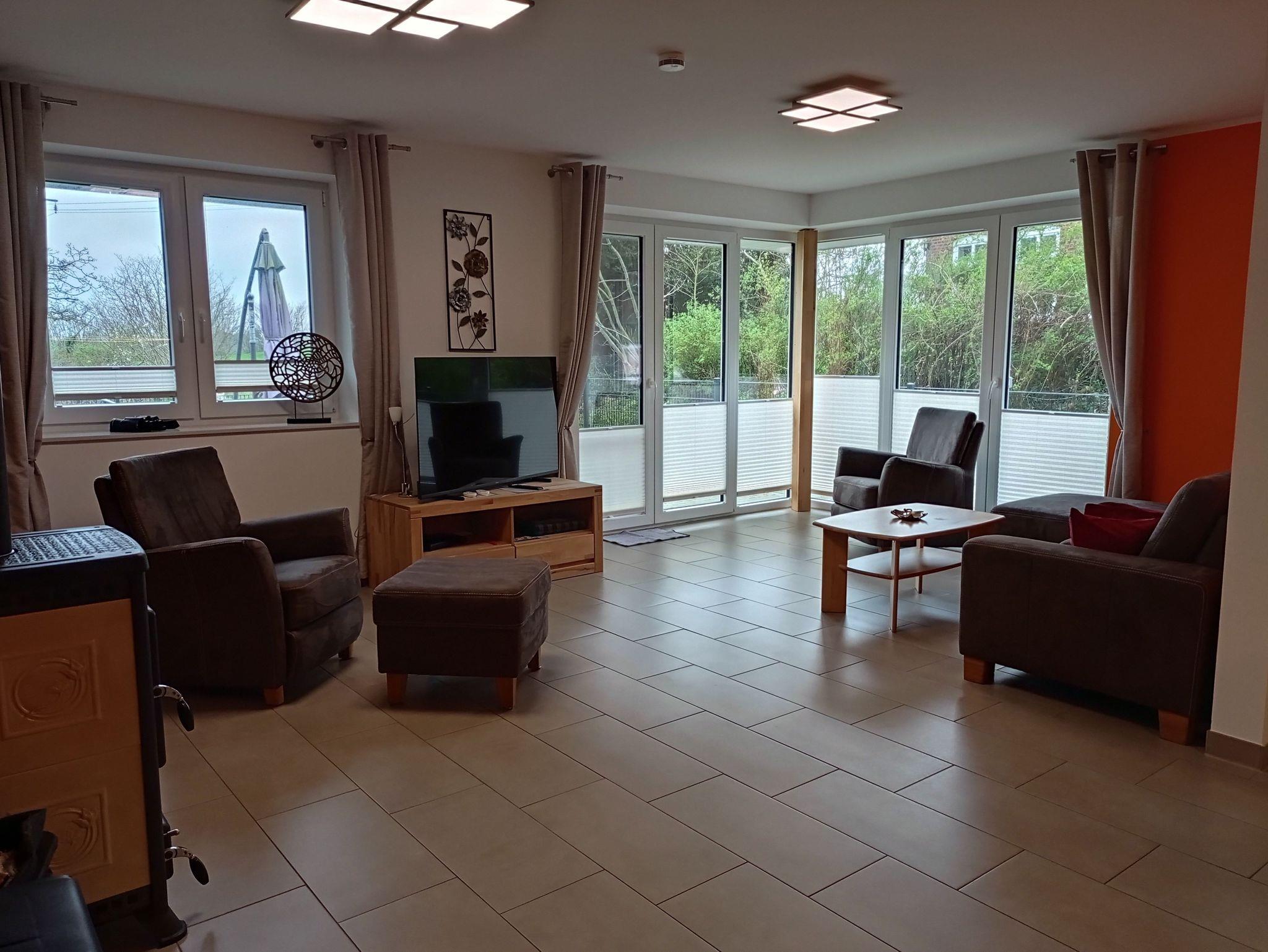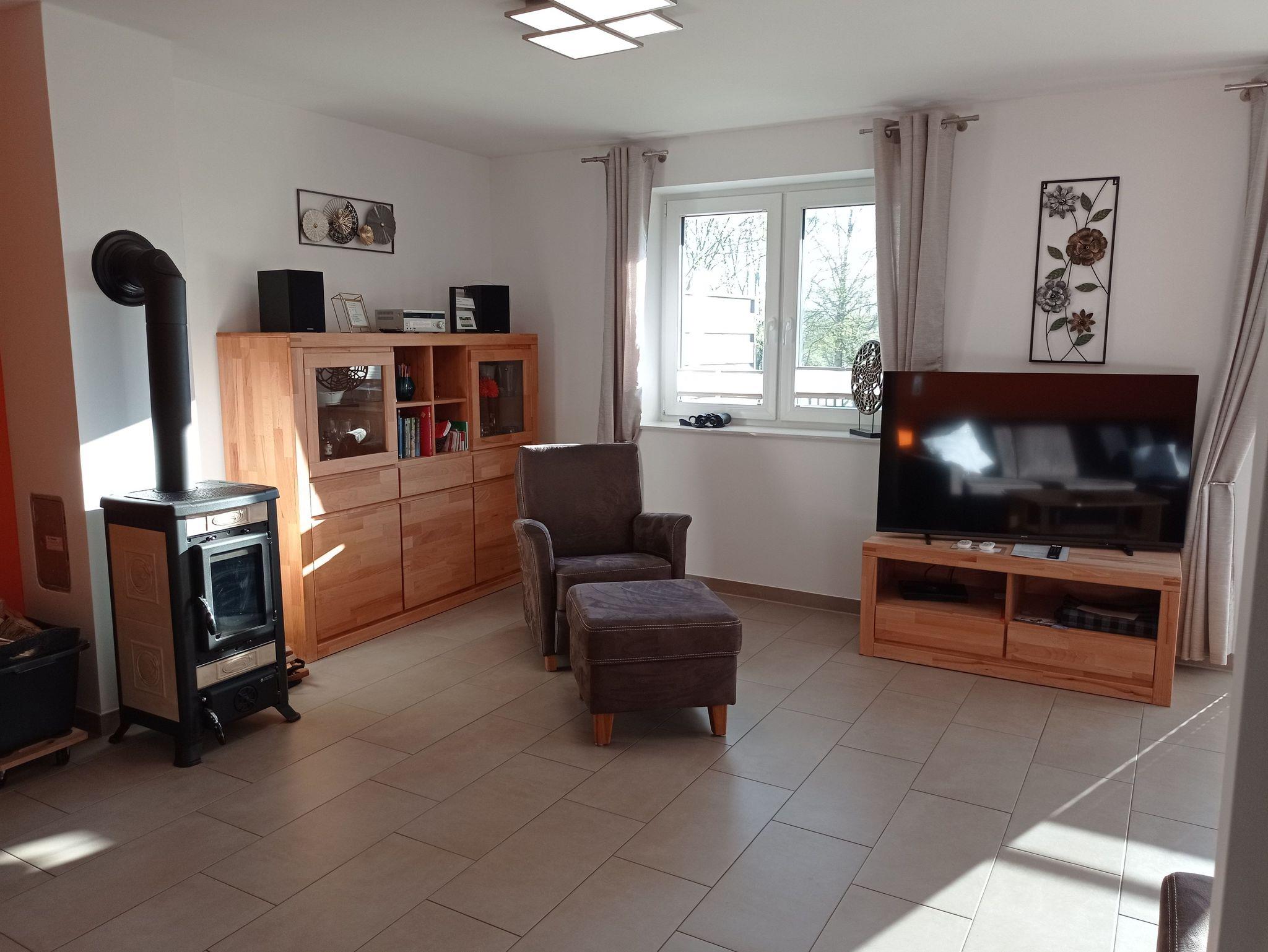 Gemütliche Doppelhaushälfte nahe Ostsee mit Terrasse, Garten und Kaminofen für erholsamen Familienurlaub.