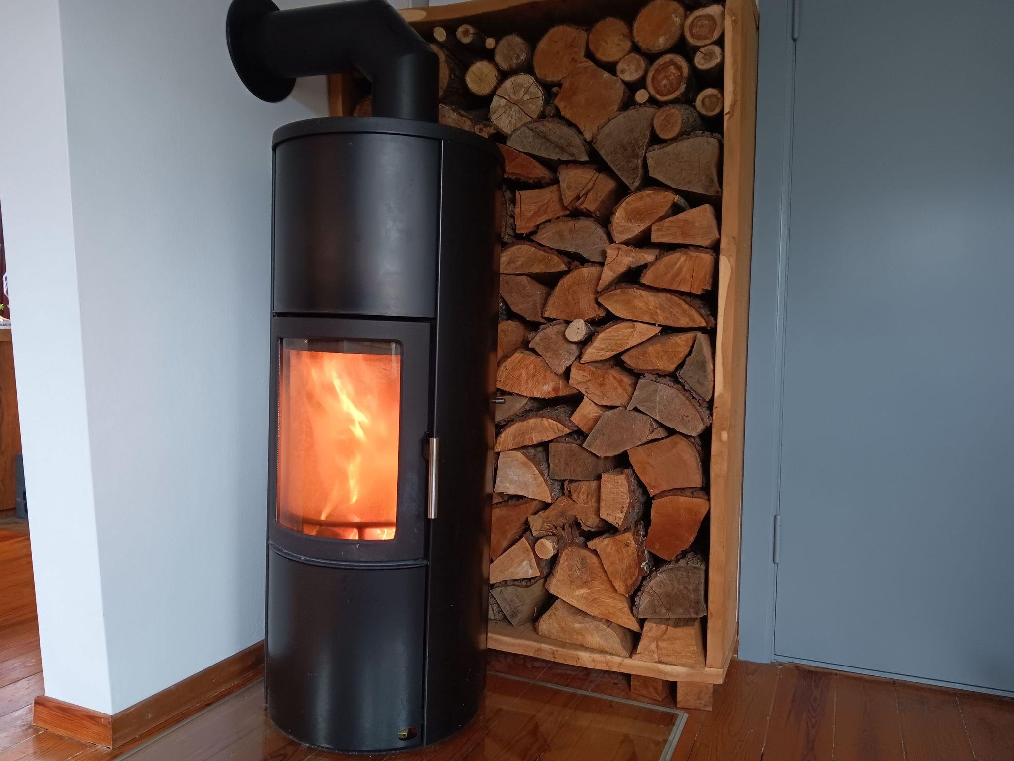 - Wohnbereich mit Kamin und zubuchbarem Holz
