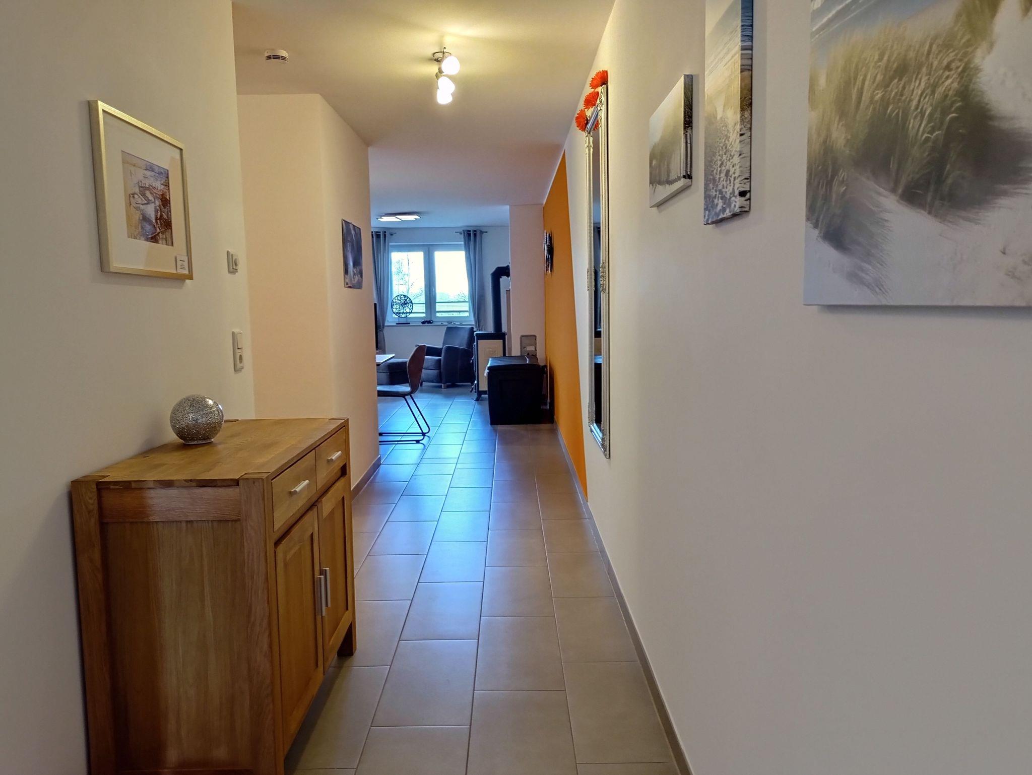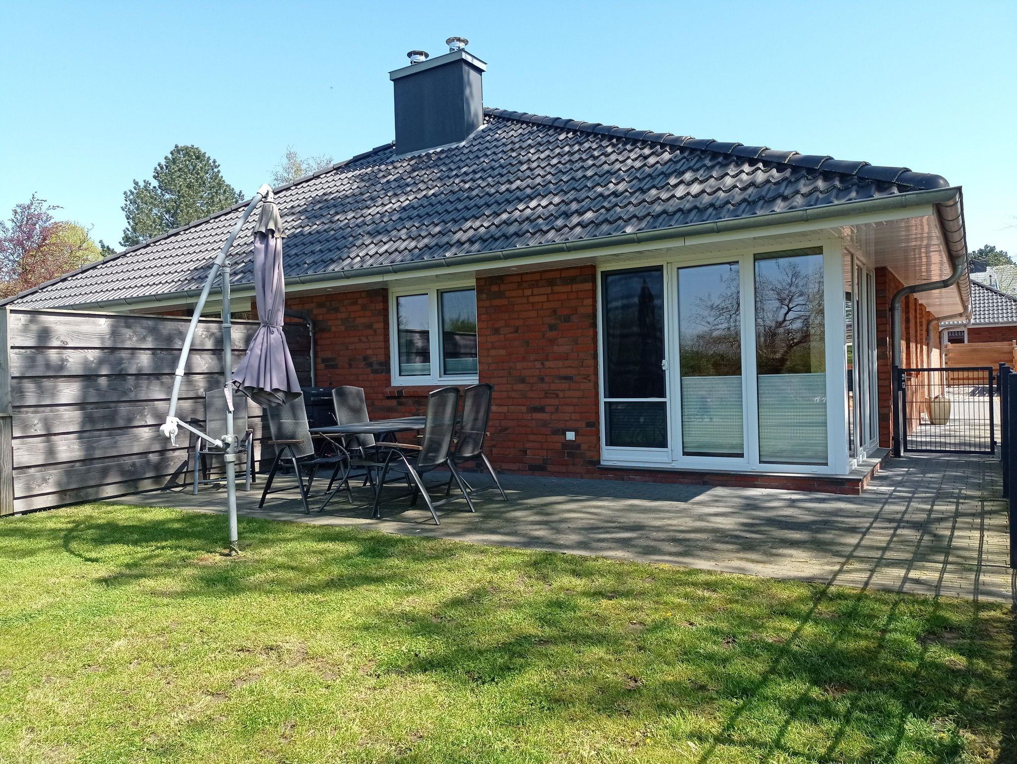 Modernes Ferienhaus mit Kamin, Terrasse und eingezäuntem Garten nahe Ostseestrand.