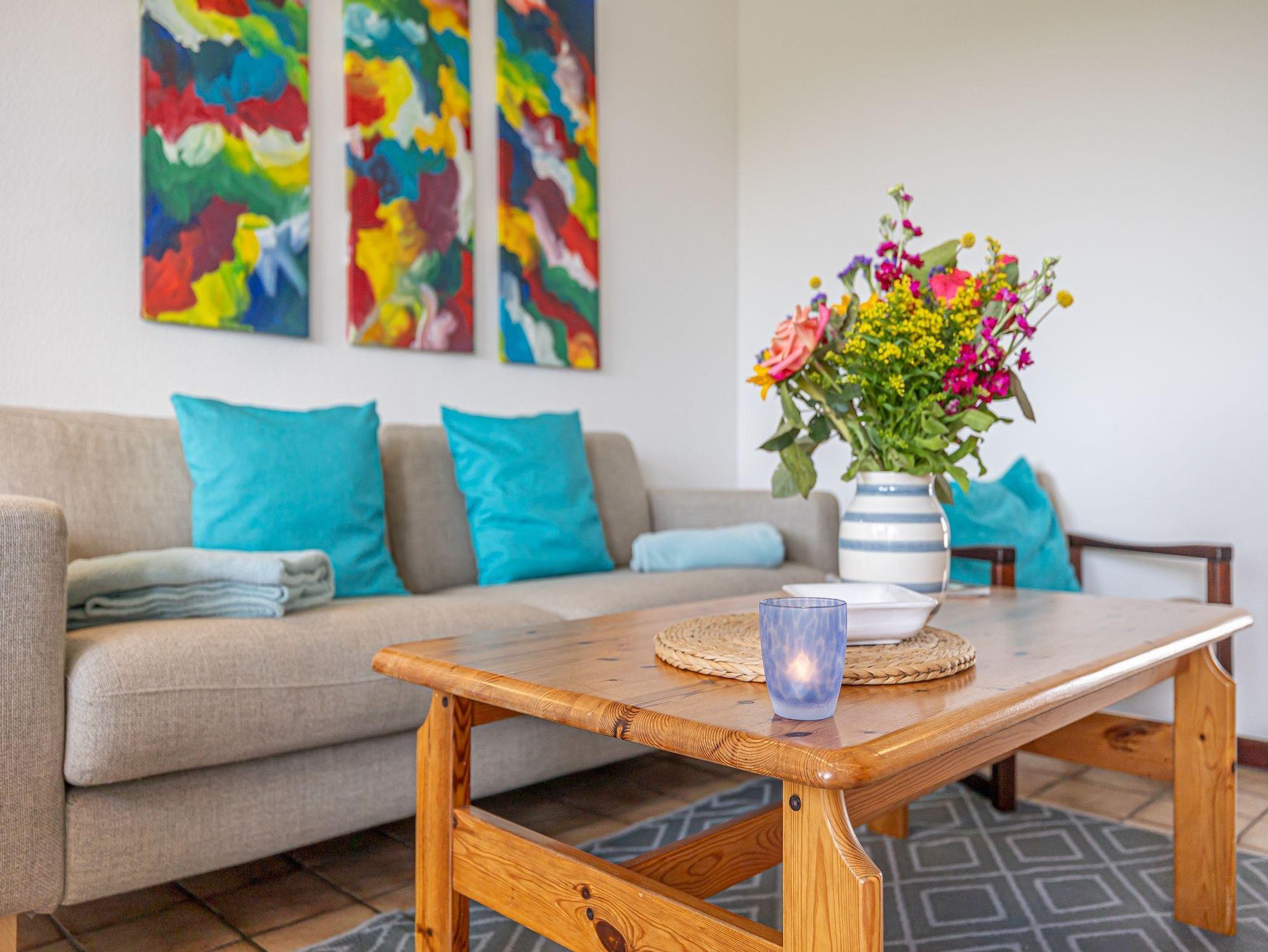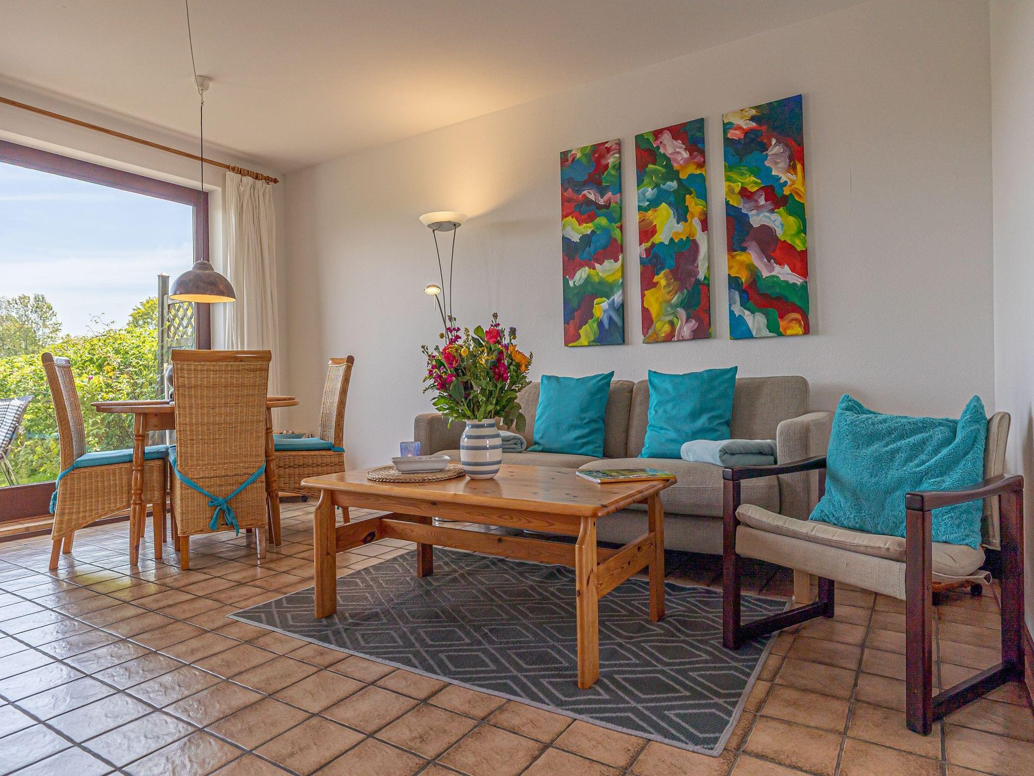 In einer der fünf schöne Ferienwohnungen im Reihenhaus wohnen hinter dem eingerückten Rosenwall an der Dorfstraße nur unweit vom Meer entfernt. Die Ferienwohnung Strandläufer für bis zu 4 Personen (plus 1 Kleinkind) bietet viel Raum zum Wohlfühlen und Entspannen.