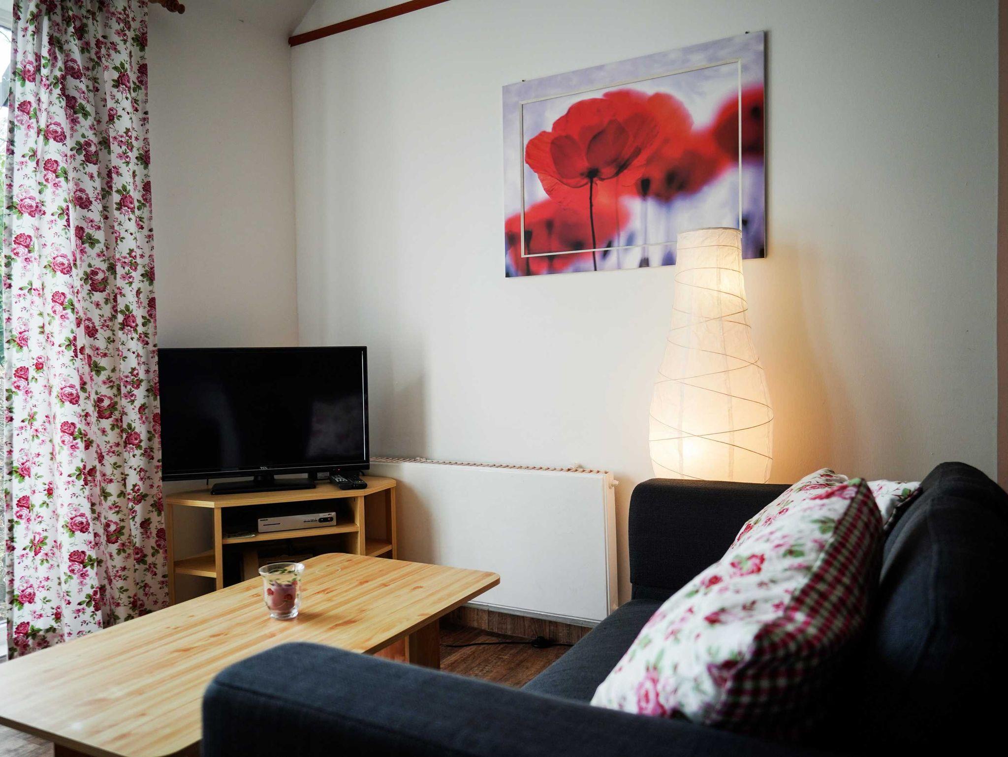 In unserer im Erdgeschoss gelegenen 45 qm großen Wohnung Rosenstube gibt es nichts ohne Rosen. Vom lichtdurchfluteten Wohnbereich blickt man direkt auf den Sattelplatz. Die Ferienwohnung verfügt über einen Wohnraum mit Küche, zwei Schlafzimmer (1x mit Doppelbett, 1x mit Etagenbett), ein Bad mit Dusche und WC sowie eine eigene Terrasse.
