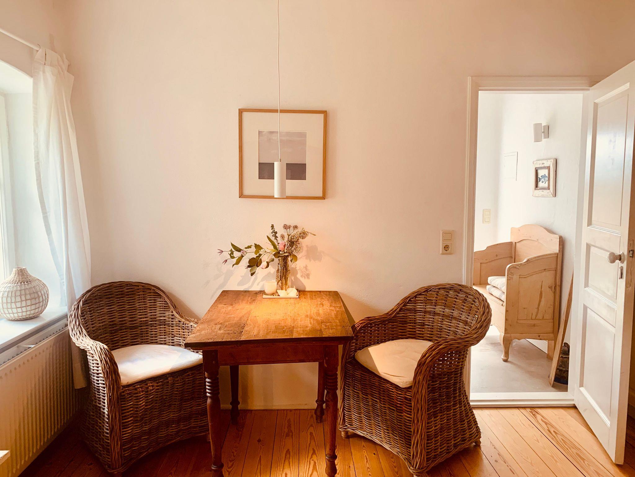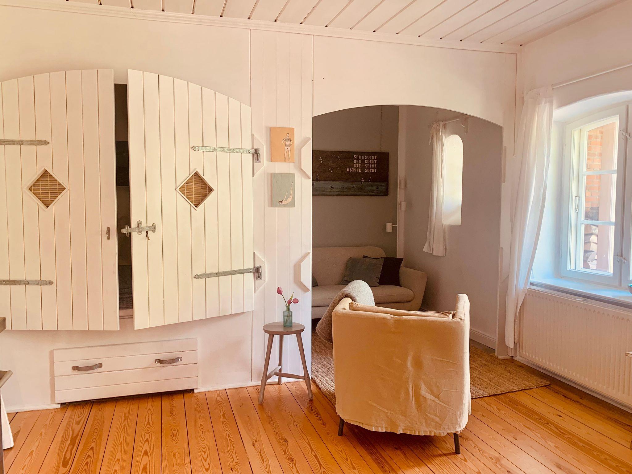 Ferienwohnung Acht im historischen Landhaus Börmoos mit Sauna, Kamin, Yoga-Raum, nahe Ostseestrand und Naturparadies für entspannte Tage.