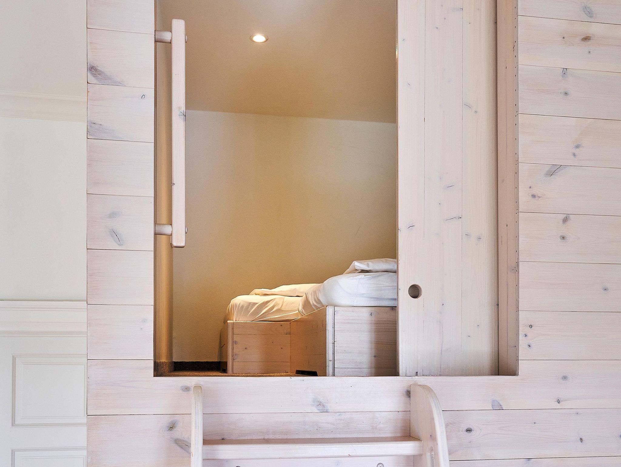 - Hems/Schlafboden mit 2 bodennahen Einzelbetten (Matratzen auf eingerahmtem Lattenrost); Bettwäsche