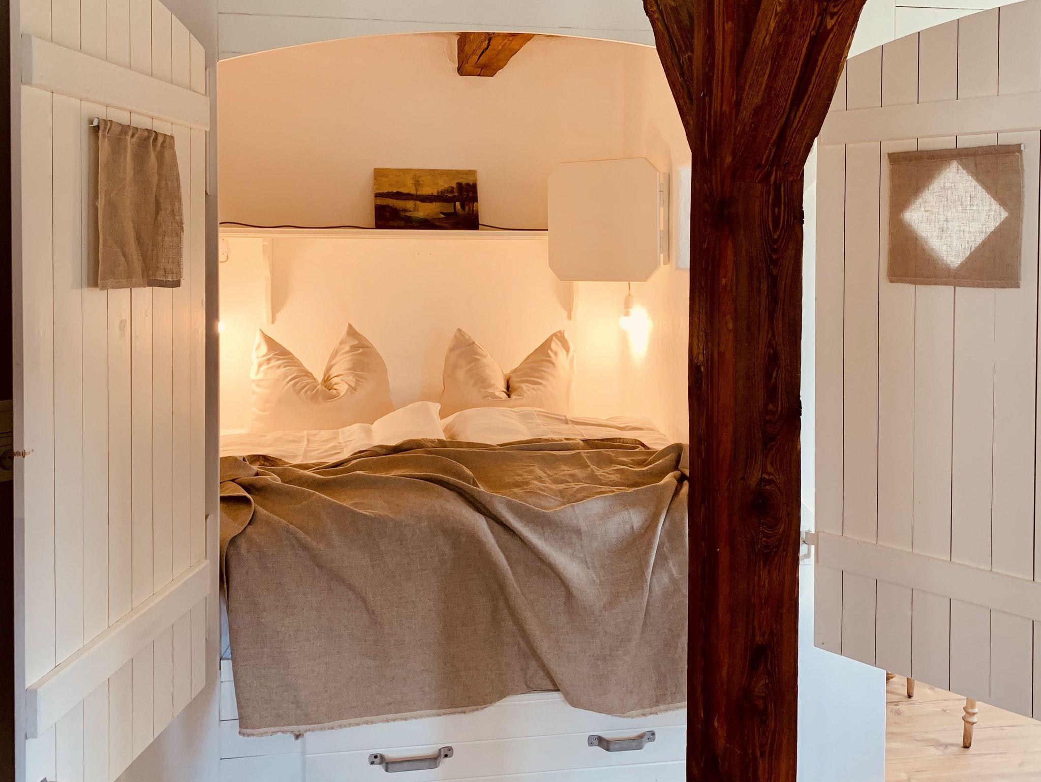 Die Ferienwohnung Twee im Landhaus Börmoos für bis zu 2 Personen ist eine von 7 Wohnungen, die im Haupthaus und der ehemaligen Scheune des historischen Anwesens entstanden sind. Die Diele in der ausgebauten Scheune mit Kamin und kleiner Bibliothek, eine Sauna und ein Yoga- und Meditationsraum stehen allen Gästen zur Verfügung. Der Preis pro Saunagang beträgt unabhängig von der Personenanzahl 20,00 Euro.
