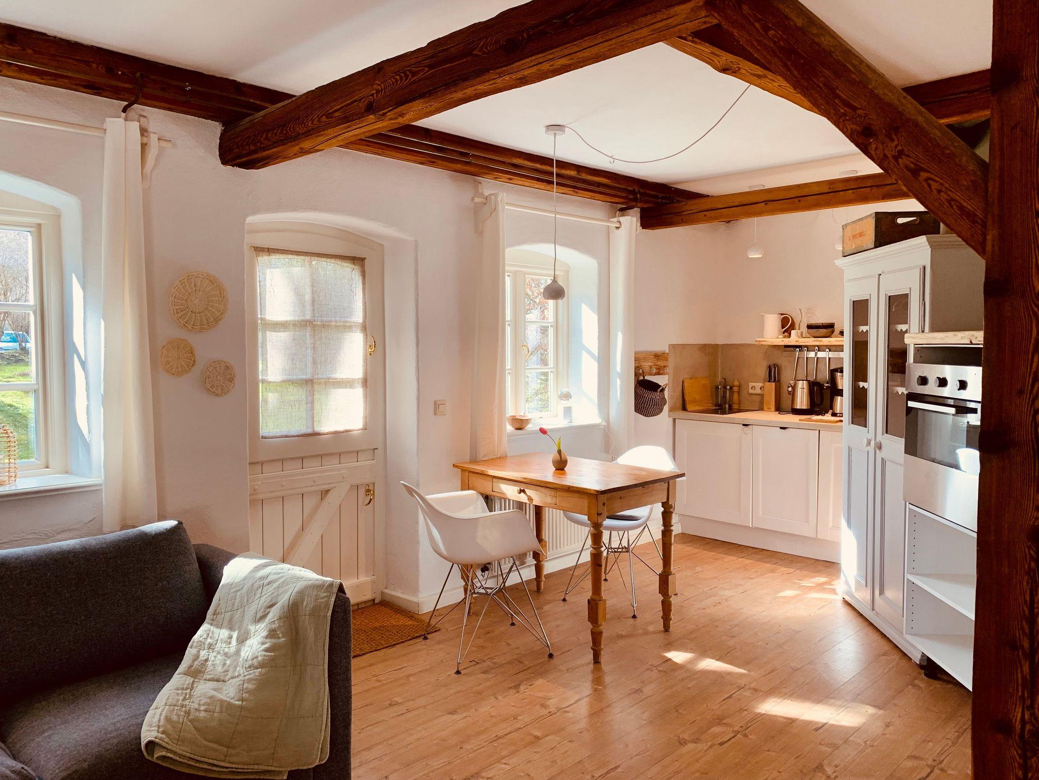 Die Ferienwohnung Twee befindet sich im Erdgeschoss der ausgebauten Scheune und ist liebevoll in einem individuellen MIx aus Modern und Antik gestaltet.