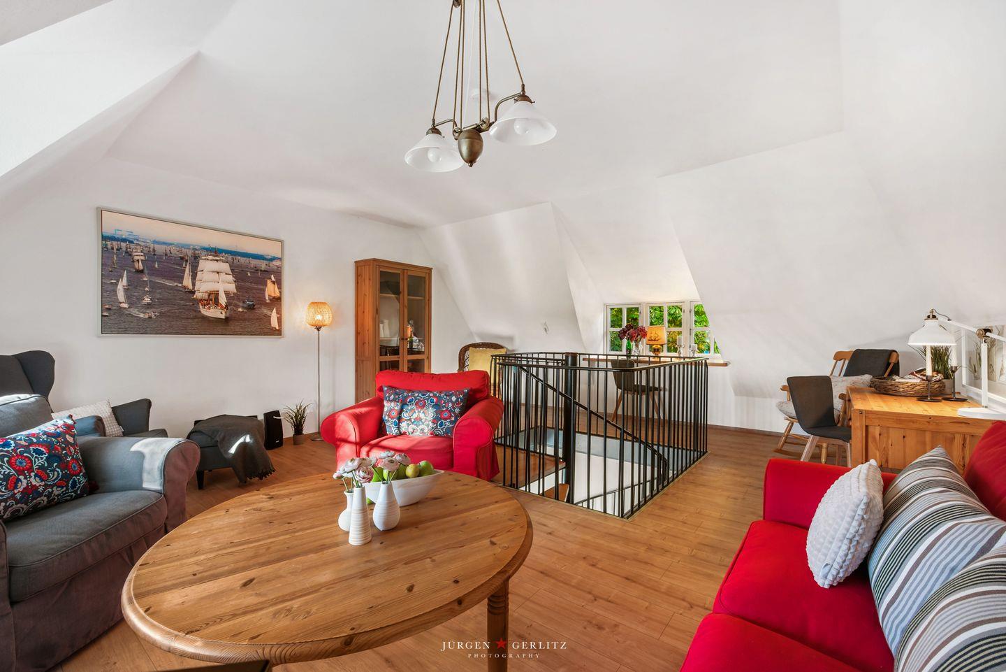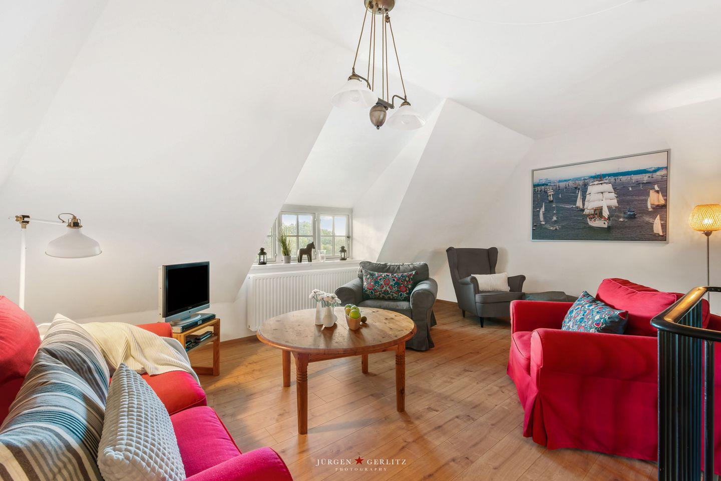Fühlen Sie sich wie im Märchen, im wunderschönen Reetdachhaus "Dornröschen" an der Geltinger Bucht! Das Apartment "Dornröschen II" bietet auf 60m² bieten Platz für 4 Personen und auch Ihr Vierbeiner ist herzlich willkommen. Im Erdgeschoss befinden sich die beiden gemütlichen und hellen Schlafzimmer mit einem Doppelbett und einem Etagenbett. Auch die voll ausgestattete Wohnküche mit angrenzendem Essbereich für 4 Personen befindet sich im Erdgeschoss und lädt zu gemütlichen Kochabenden ein. Das helle Badezimmer ist modern und verfügt über eine ebenerdige Dusche. Über eine Wendeltreppe gelangen Sie in das 1. Obergeschoss und befinden sich in einem großen Wohnbereich wieder. Hier können Sie es sich auf Sofas und Sesseln bequem machen und durch die zwei großen Gauben die wunderschöne Naturlandschaft bestaunen. Der idyllische Innenhof des Hauses lädt zu einem gemeinsamen Frühstück in der Morgensonne ein. Außerdem gibt es noch weitere Sitzmöglichkeiten auf der Rückseite des Hauses, von denen Sie einen wunderschönen Ausblick über die angrenzenden Wiesen und Felder haben. Sie parken kostenfrei vor der Unterkunft.