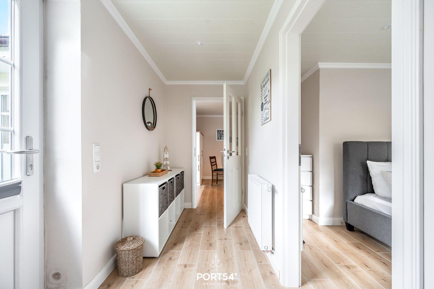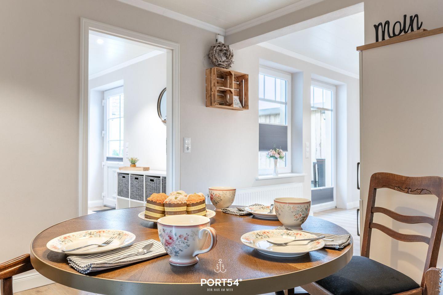 Auf 80 m² bietet Dir die hell eingerichtete Ferienwohnung zwei gemütliche Schlafzimmer, ein Badezimmer, einen offenen Wohn- und Essbereich sowie eine Sonnenterrasse.