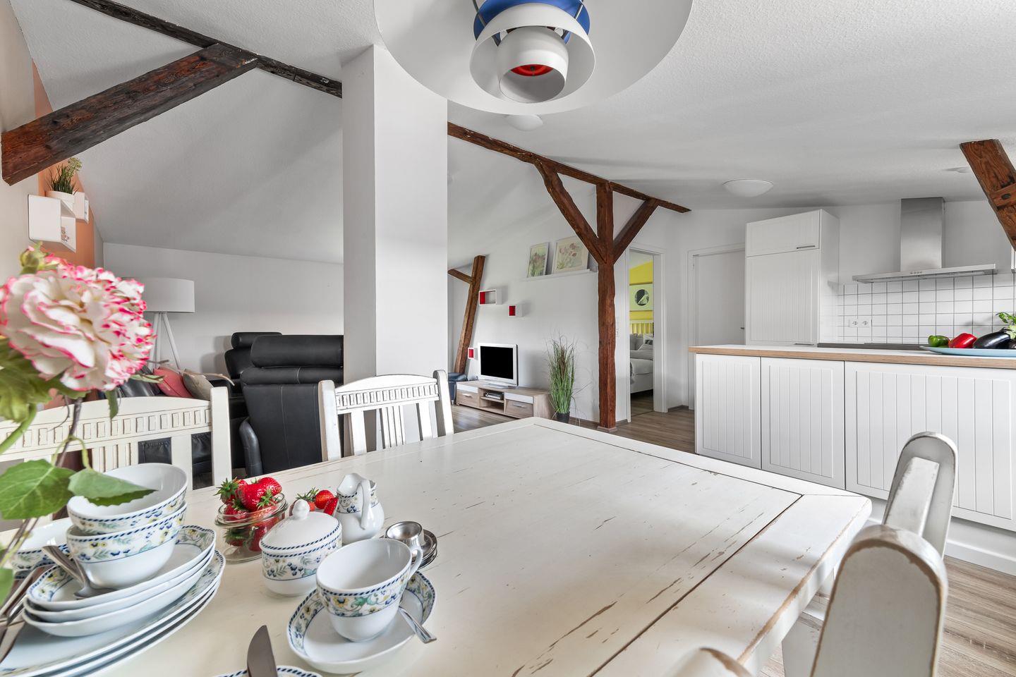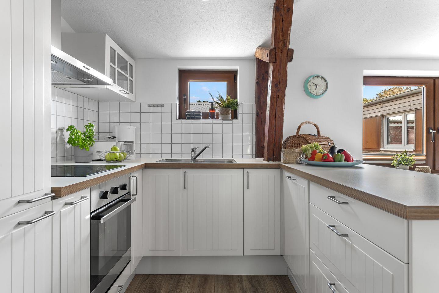 Im kombinierten Küchen- und Essbereich im Erdgeschoss können Sie mit 8 Personen am Esstisch das leckere Essen und die gemeinsame Zeit genießen. Aus dem Wohnzimmer gelangt man direkt auf die Terrasse. Im Obergeschoß gibt es noch eine weitere voll ausgestattete Küche mit Essbereich. Hier finden 4 Personen Platz.