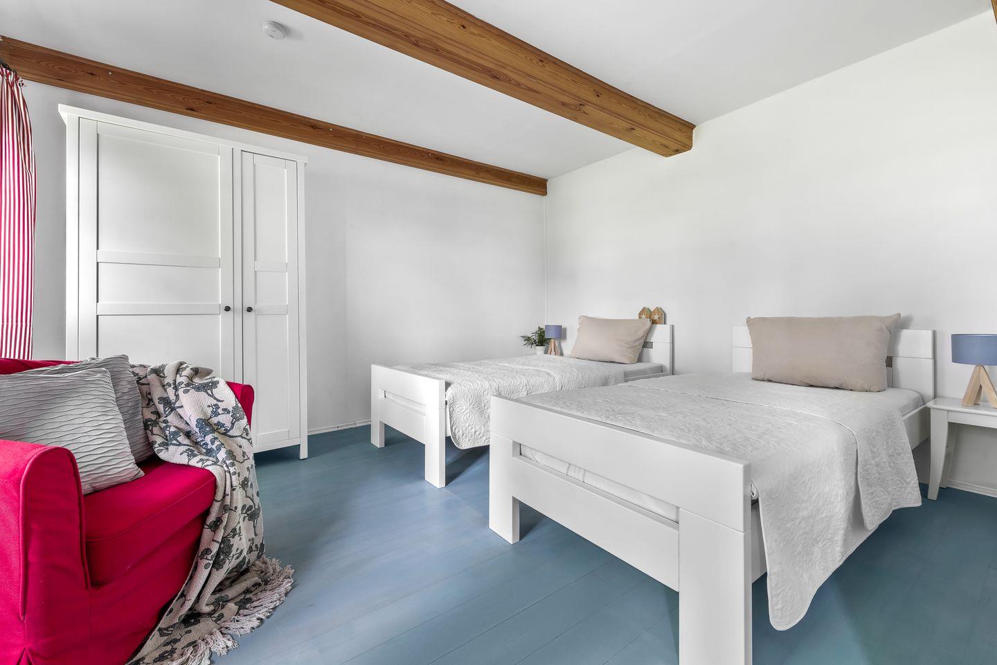 Sie haben die Wahl zwischen 4 komfortablen Schlafzimmern. Zwei Schlafzimmer befinden sich im Erdgeschoss. Einmal mit Doppelbett und einmal mit zwei Einzelbetten ausgestattet. Im Oberschoss befinden sich zwei weitere Schlafzimmer. Einmal mit Doppelbett und einmal mit zwei Einzelbetten ausgestattet. Zusätzlich können noch zwei Personen auf dem Schlafsofa im Wohnzimmer untergebracht werden. Aus allen Schlafzimmer können Sie den Blick ins Grüne genießen.