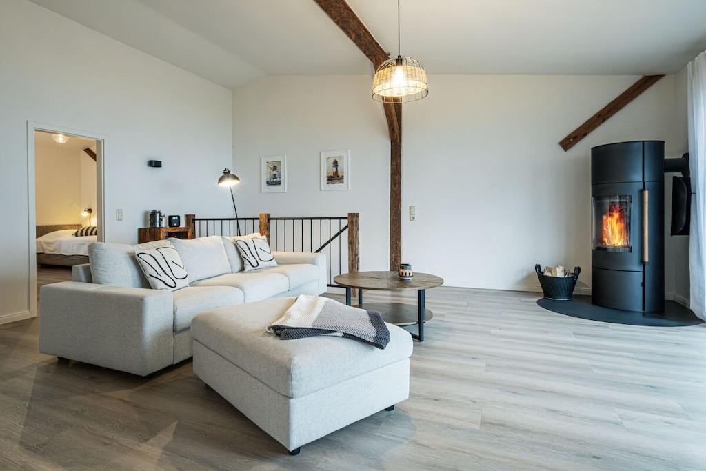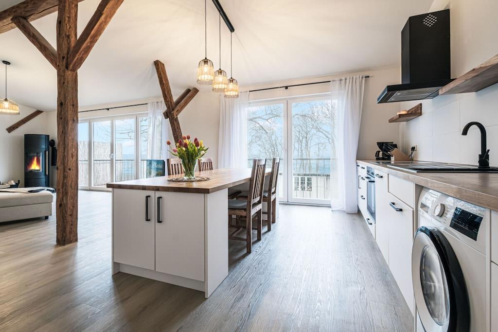 Genießen Sie eine entspannte Auszeit am Meer in ruhiger Atmosphäre. Die schöne Ferienwohnung Ostscheune am Mühlendamm bietet, mit ihrem individuellen Loft-Charme und Meerblick-Panoramafenster, den perfekten Rahmen zum Wohlfühlen. Die private Sauna, ein Ofen und die geschmackvolle Einrichtung Runden das Wohlfühlpaket ab. Die neue Wohnküche (mit Waschmaschine) ist umfangreich ausgestattet. Hier können Sie sich nach Lust und Laune selbst versorgen und am großen Fenster Ihre Auszeit am Meer genießen. Das moderne Badezimmer verfügt über eine Dusche und Fußbodenheizung. In beiden Schlafzimmern finden Sie gemütliche Box-Springbetten. Es gibt einen privaten Grill- und Lagerfeuerplatz mit Blick über die Felder. Hunde sind hier willkommen.