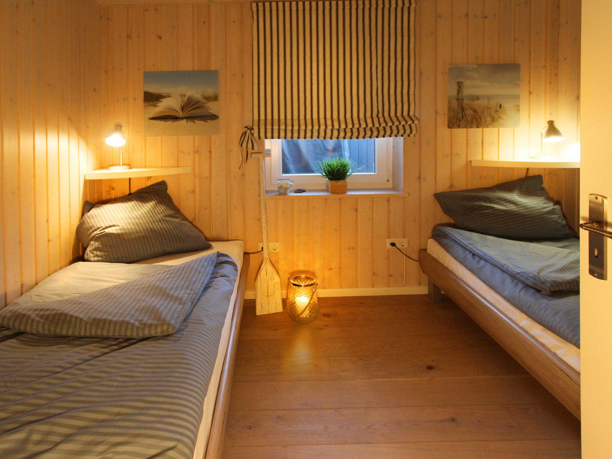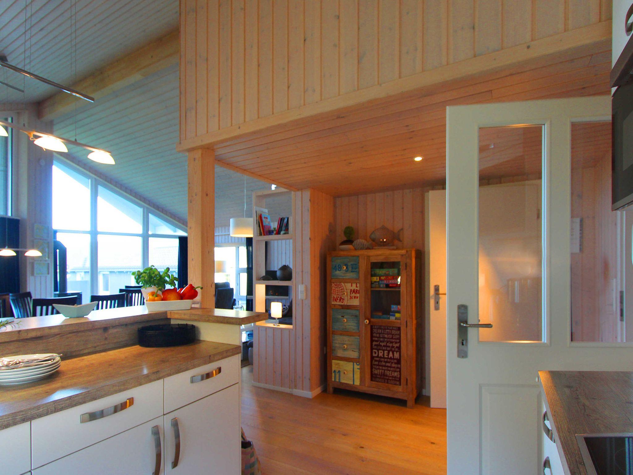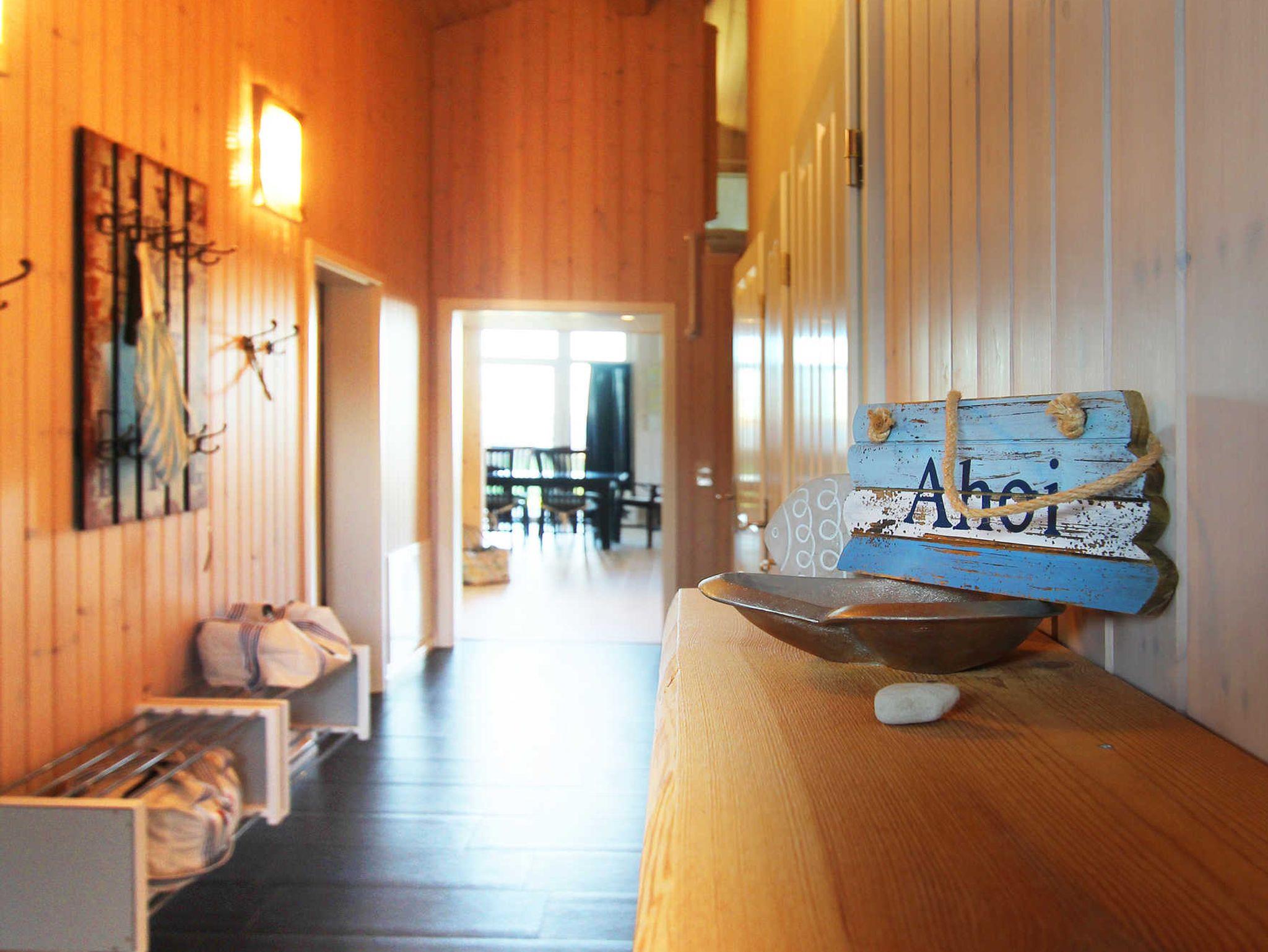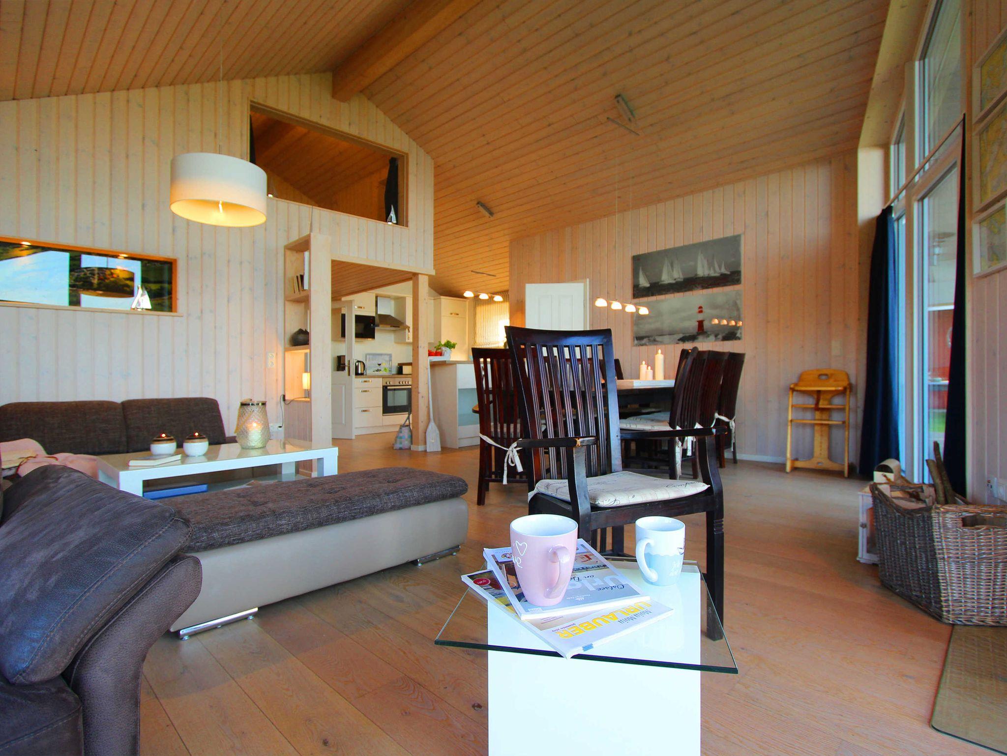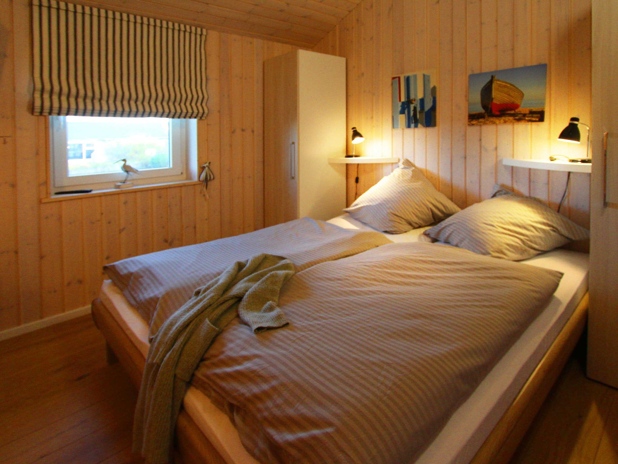 Der helle Wohn- und Essbereich des barrierefreien Hauses ist mit einer offener Küche und einem Kaminofen ausgestattet. Die 4 Schlafzimmer des Hauses laden mit behaglichen Doppelbetten zu erholsamem Schlafen und Träumen ein. Der Hems (Schlafboden) ist mit seinen beiden Schlafmatratzen eine weitere Trauminsel für eine 9. und 10. Person.