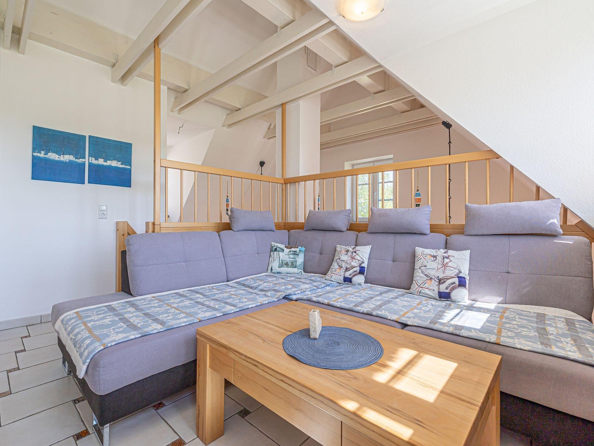 • Loungebereich auf der Galerie mit TV und Schlafsofa (160x200)