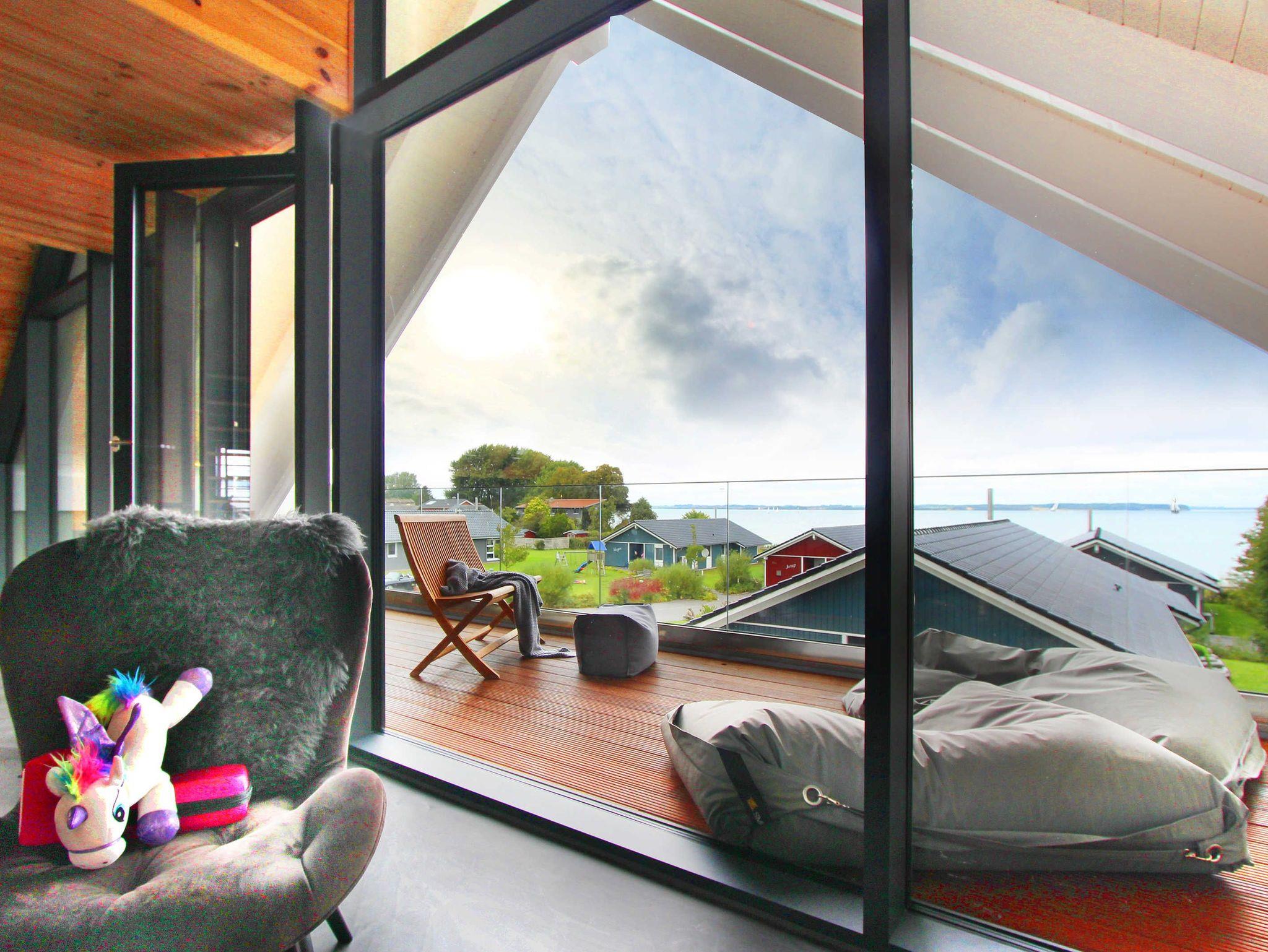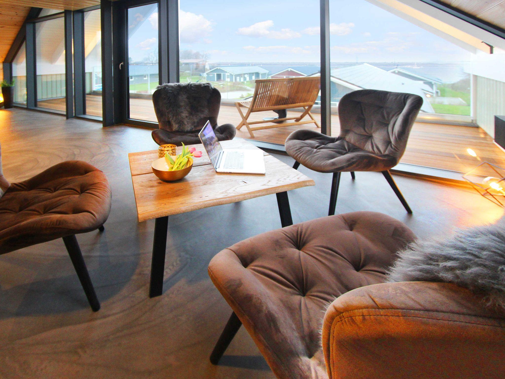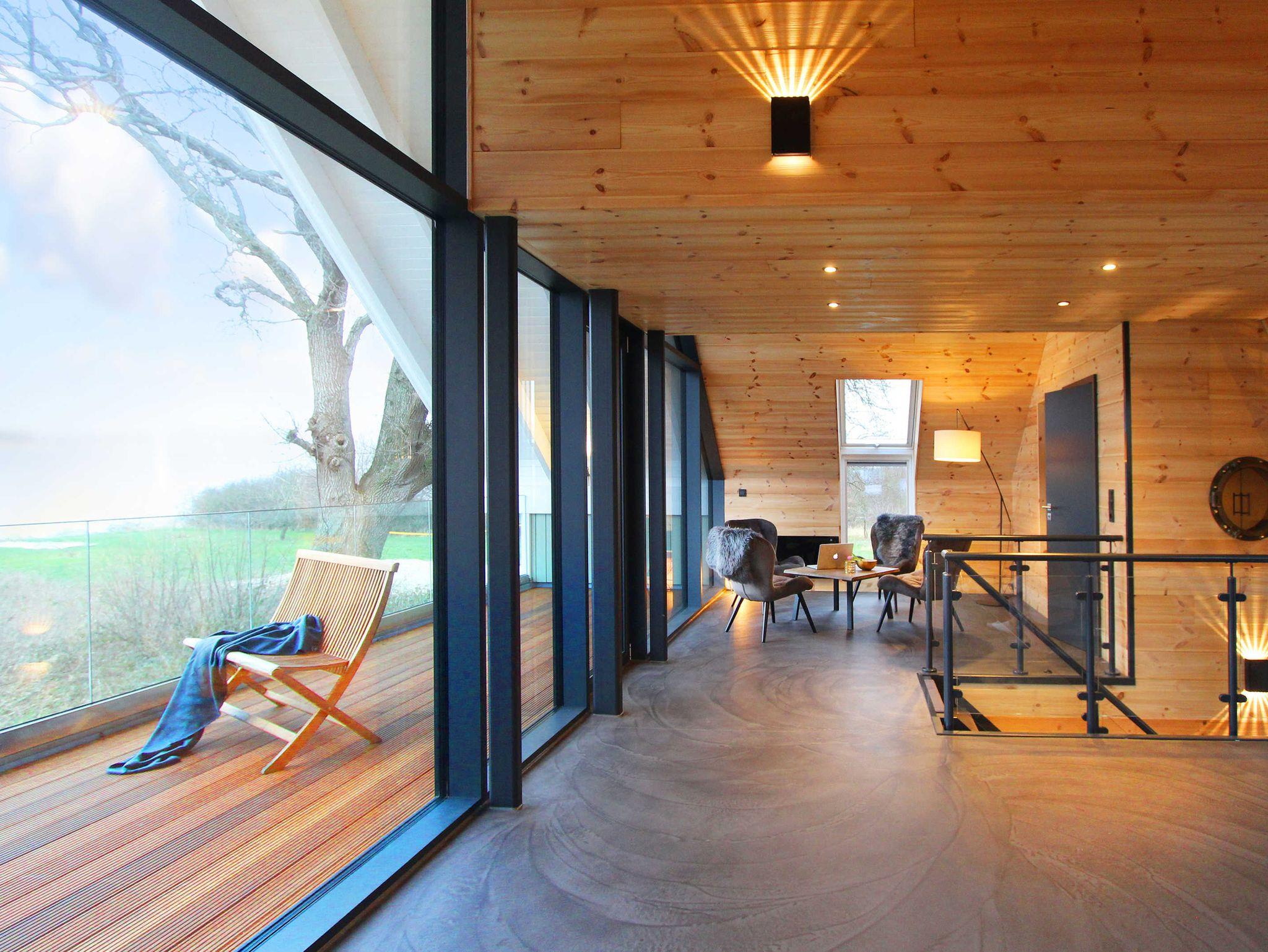 In der unteren Etage ist ein großer Essbereich inkl. großer Südterrasse und in der oberen Etage ein großer Wohnbereich mit großem Balkon nach Dänemark.