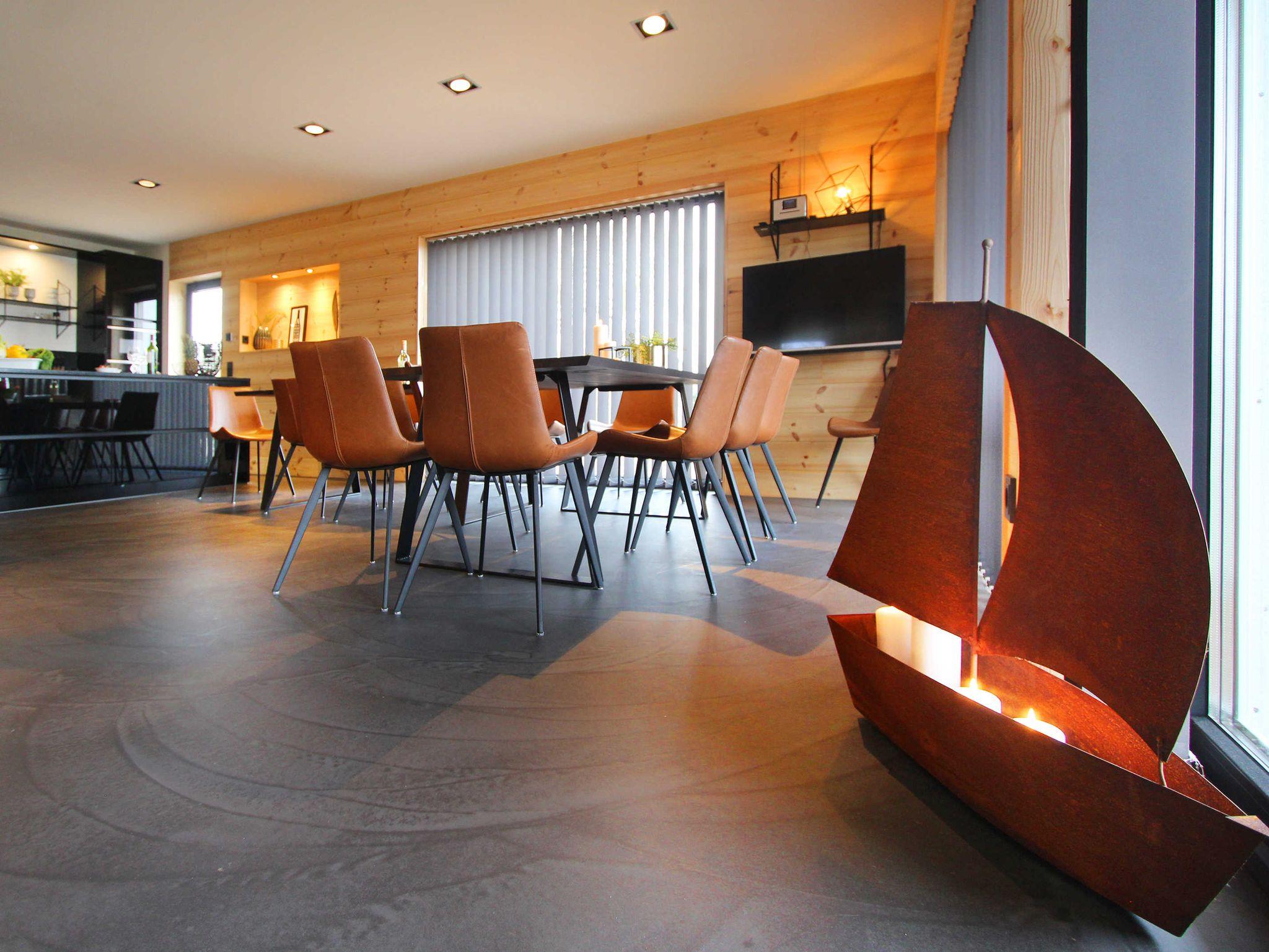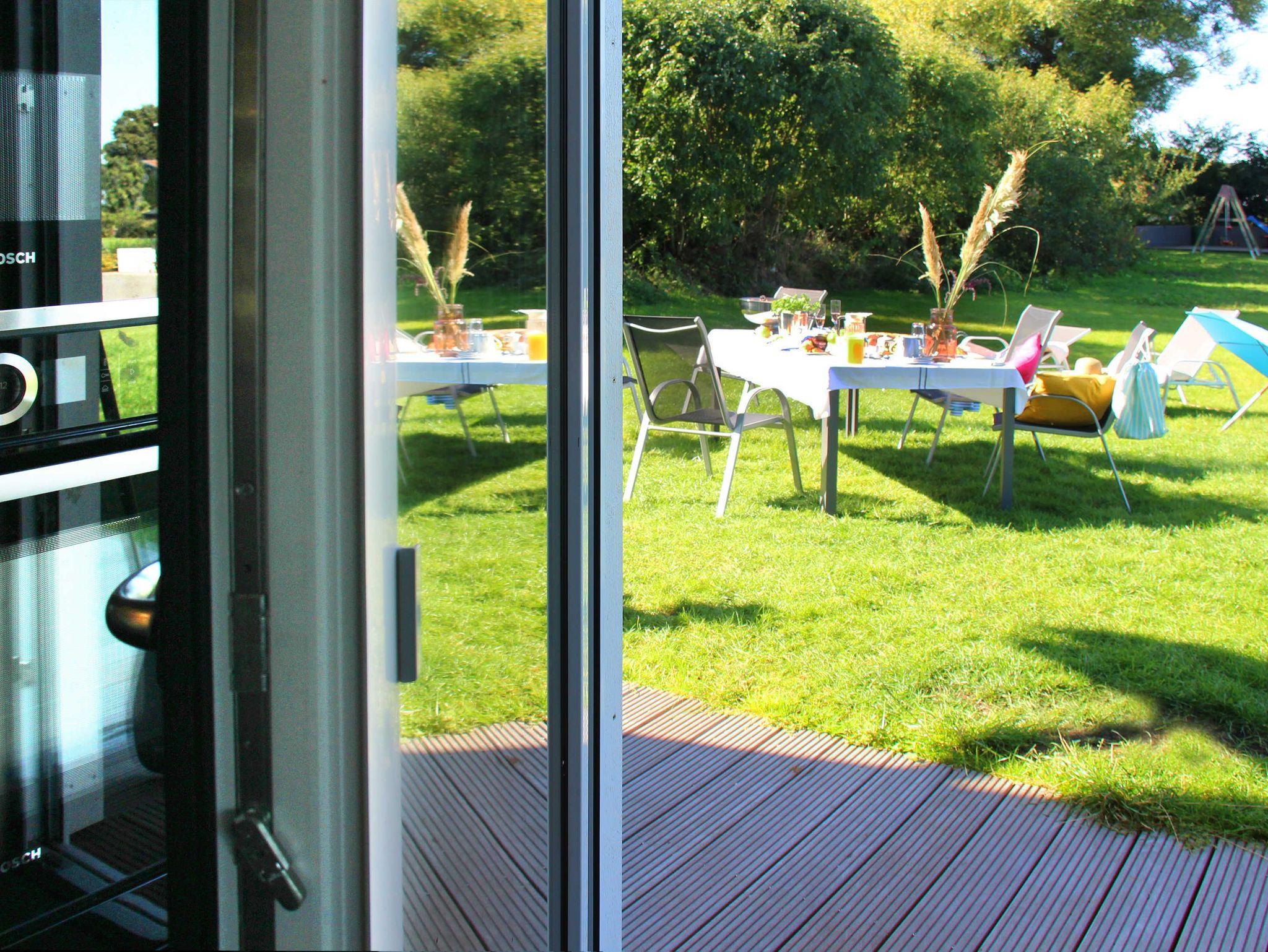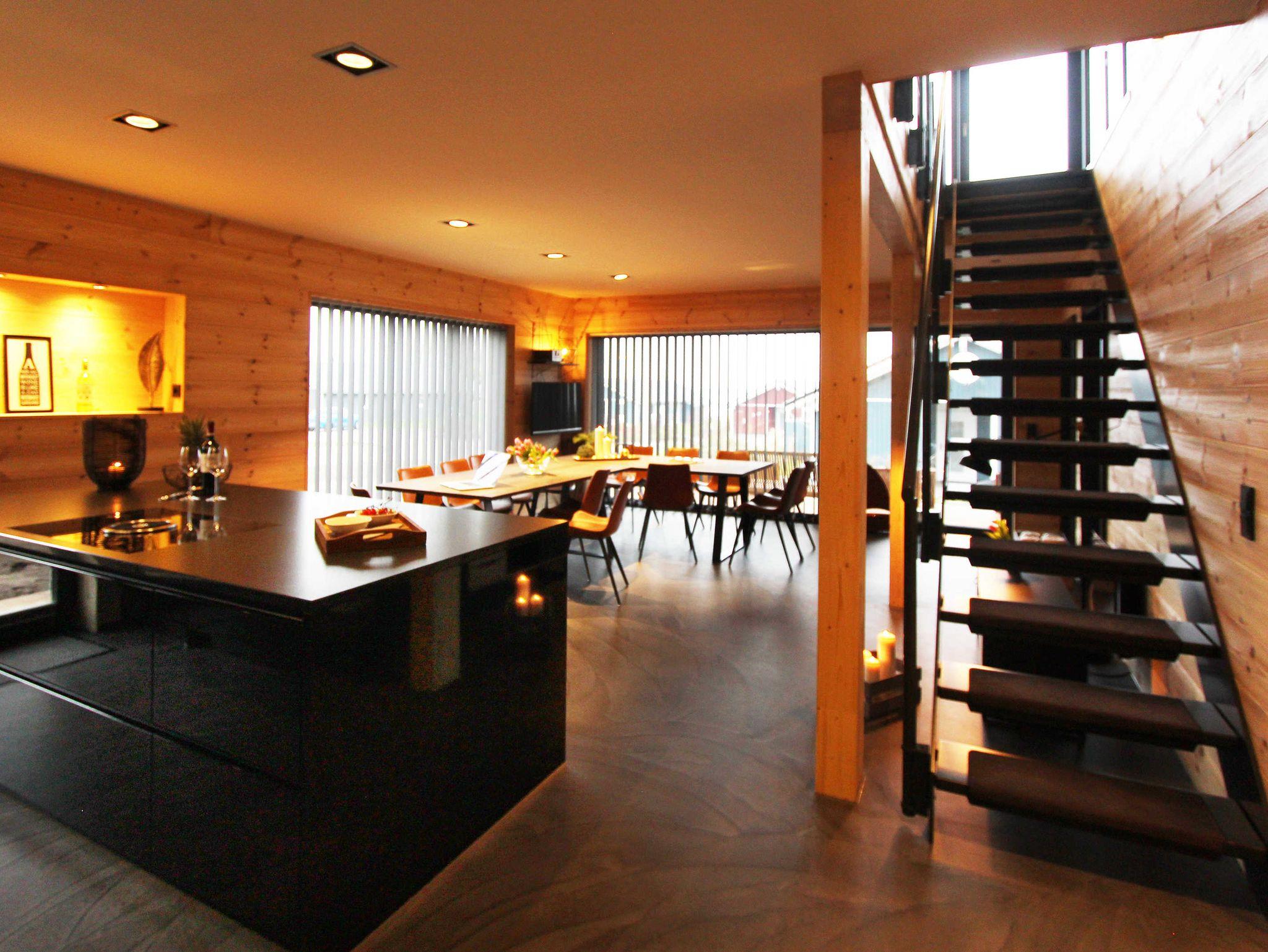 In der unteren Etage ist ein großer Essbereich inkl. großer Südterrasse und in der oberen Etage ein großer Wohnbereich mit großem Balkon nach Dänemark.