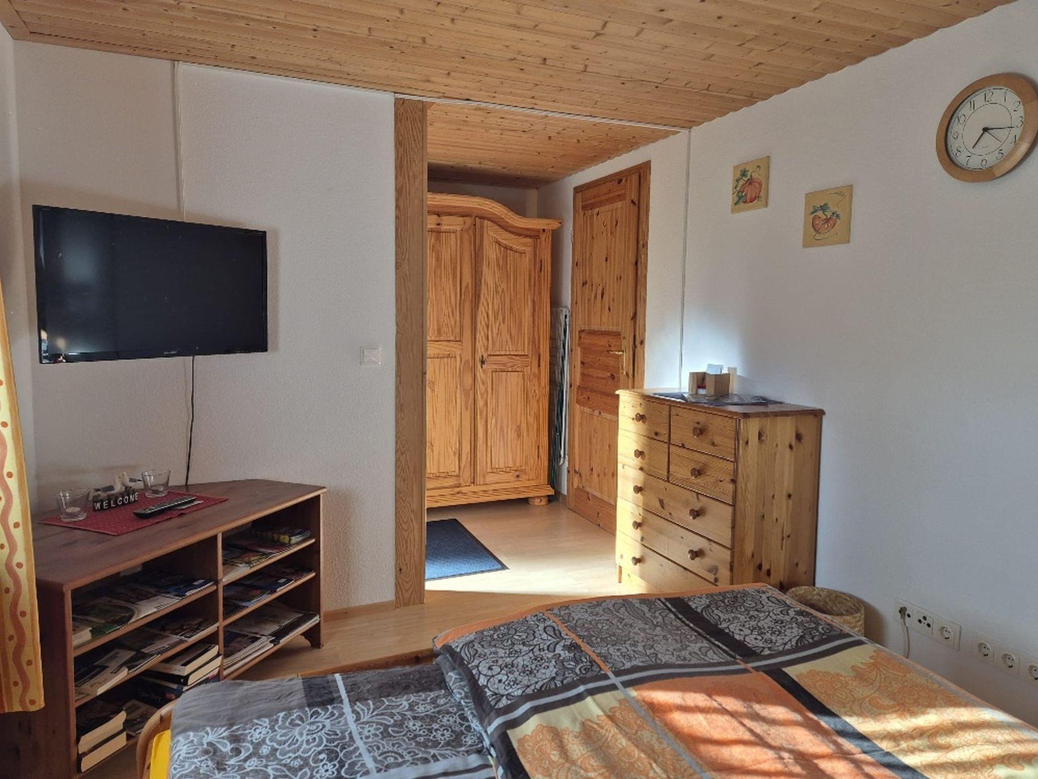 -Schlaf und Wohnbereich mit franz. Doppelbett (1,40 x 2,00) und TV; Bettwäsche inklusive