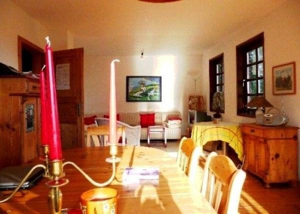 • Großzügiges Wohn-/Esszimmer mit gemütlicher Sitzecke, einem Essbereich für 8 Personen, einem Kaminofen, welcher für wohlige Wärme sorgt.