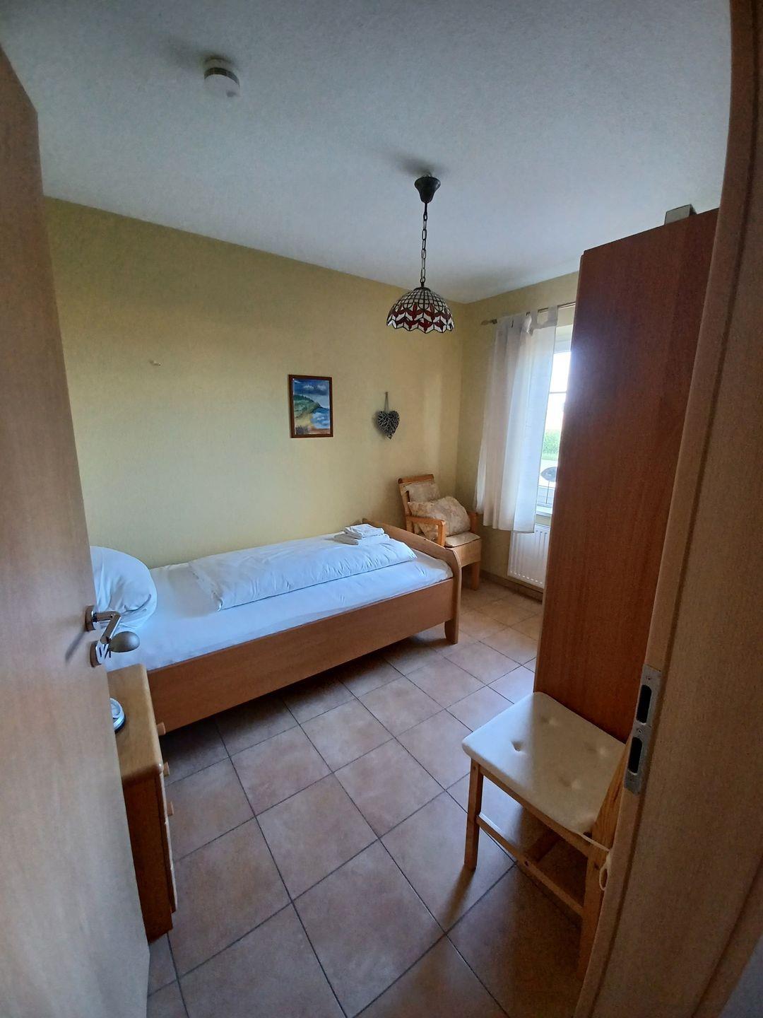 Diese Ferienwohnung im EG bietet auf 90m² Platz für bis zu 5 Personen. Sie bietet Ihnen einen großzügigen Wohnbereich mit angrenzender, vollausgestatteter Küche & ein Badezimmer, das über eine Dusche verfügt. Zwei, der drei Schlafzimmer verfügen über ein gemütliches Doppelbett & das dritte über 2 Einzelbetten. Das Schlafsofa bietet weitere Schlafmöglichkeiten. Auf der Sonnenterrasse mit Holzkohlegrill und einem Gemeinschaftsgarten können Sie Ihren Abend entspannt ausklingen lassen.