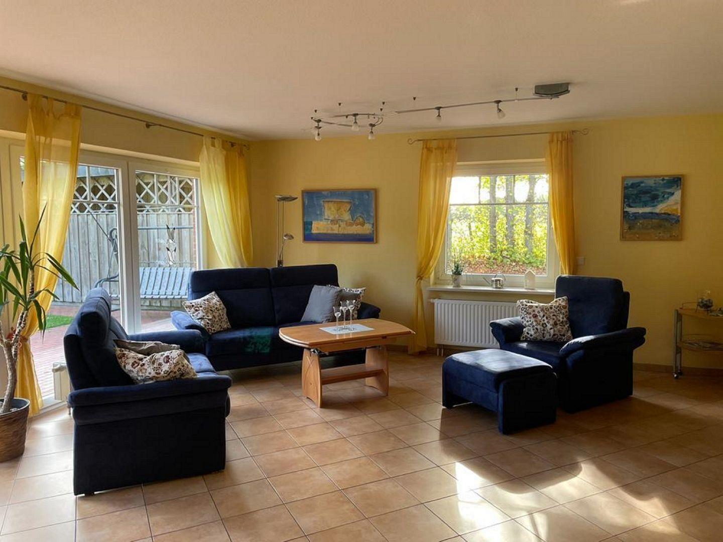 Gemütliches Erdgeschoss-Apartment mit Terrasse, Garten, Kamin und Grill für erholsamen Ostseeurlaub.