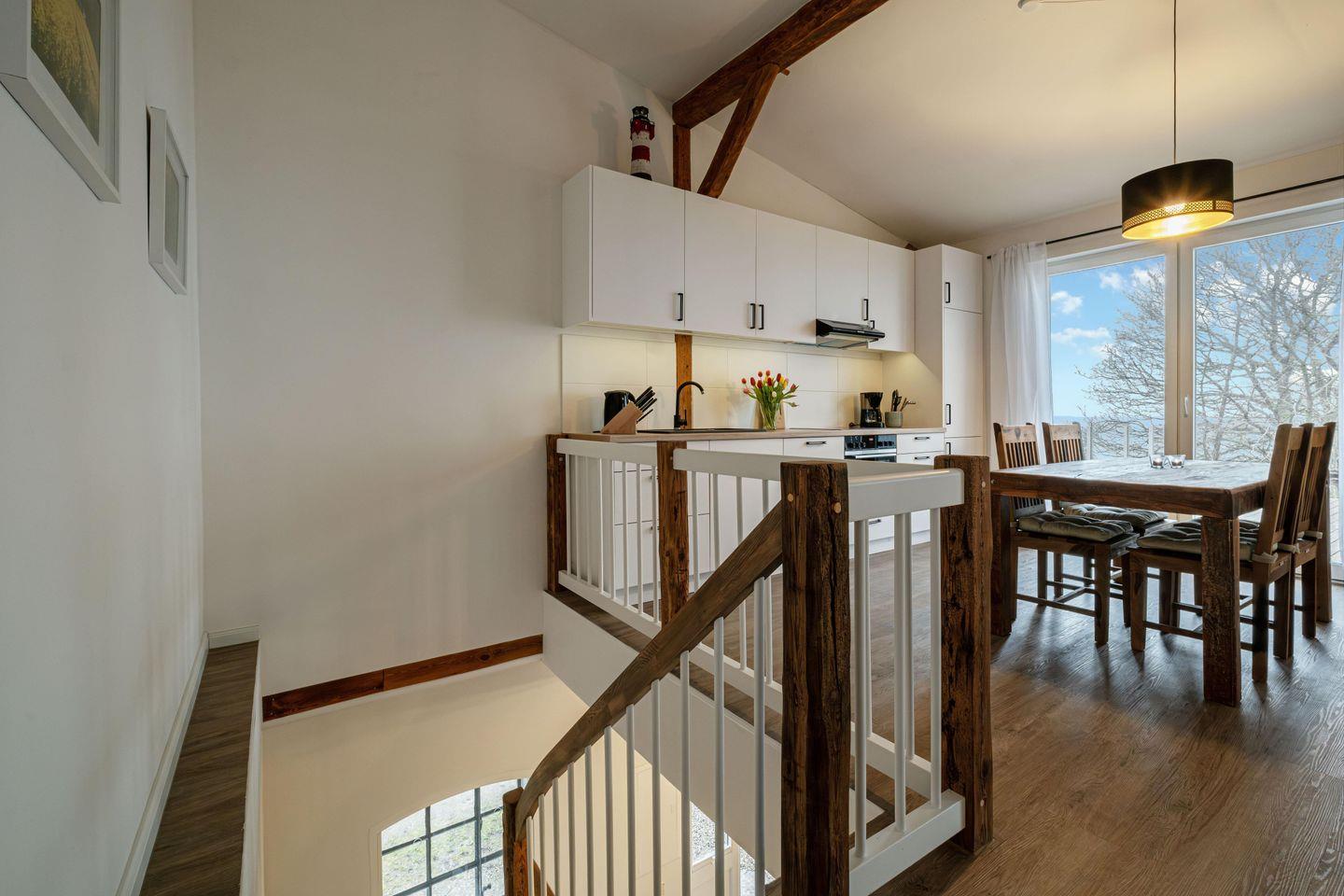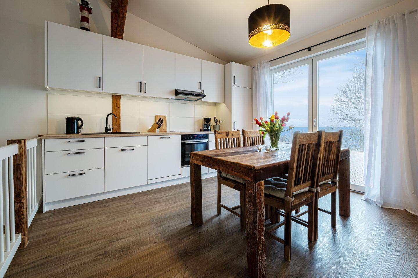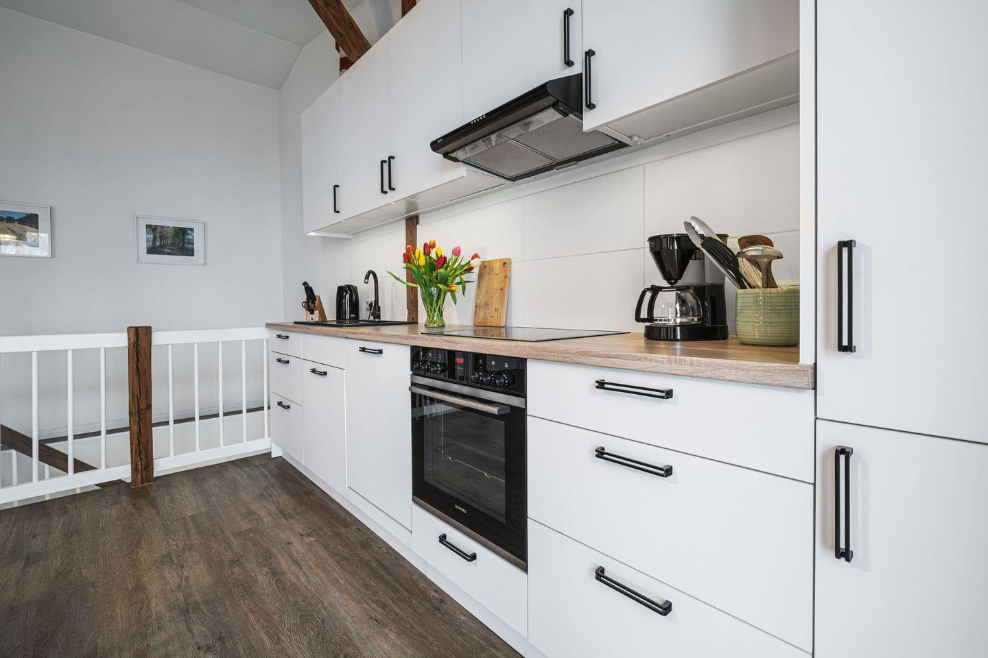 Die neue Wohnküche, mit den liebevoll aufgearbeiteten Möbeln ist umfangreich ausgestattet. Hier können Sie sich nach Lust und Laune selbst versorgen oder direkt auf der Dachterrasse Ihre Auszeit genießen.