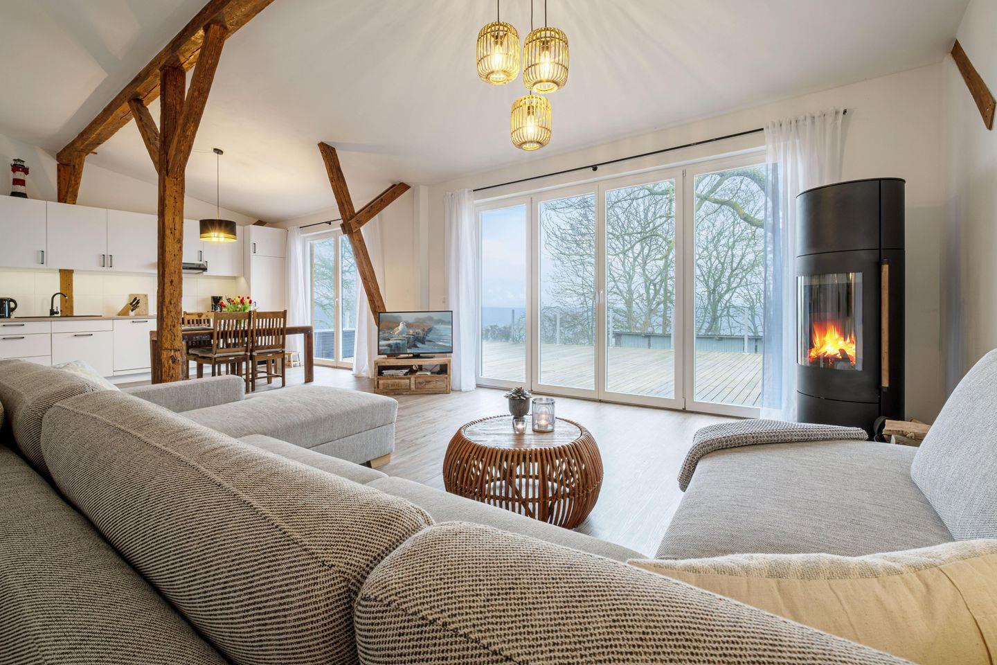 Großzügige und moderne Ferienwohnung mit Meerblick, Dachterrasse, Ofen, privater Sauna und Meeresbrise. Der Strand ist nur wenige Meter vom Haus entfernt.