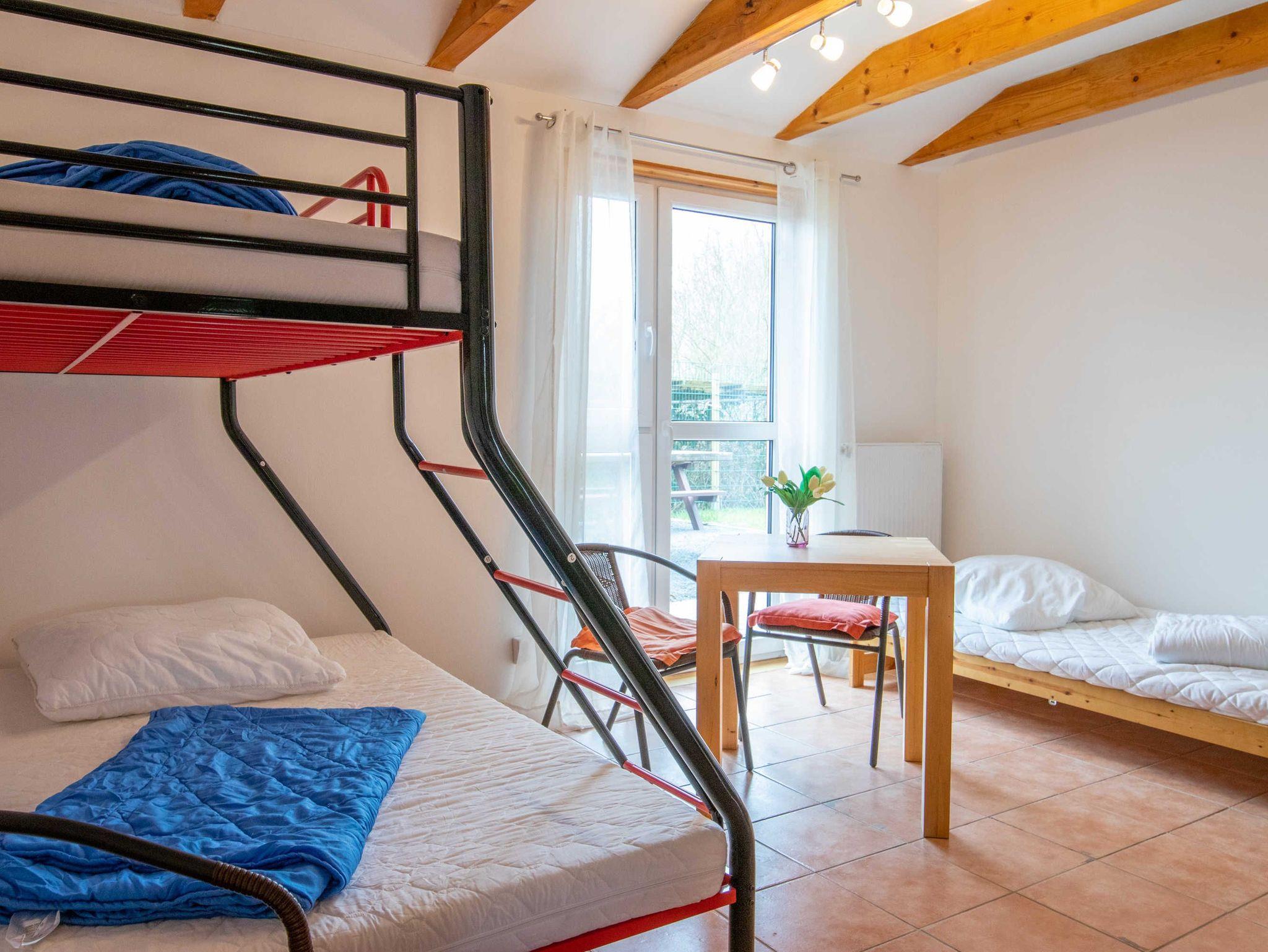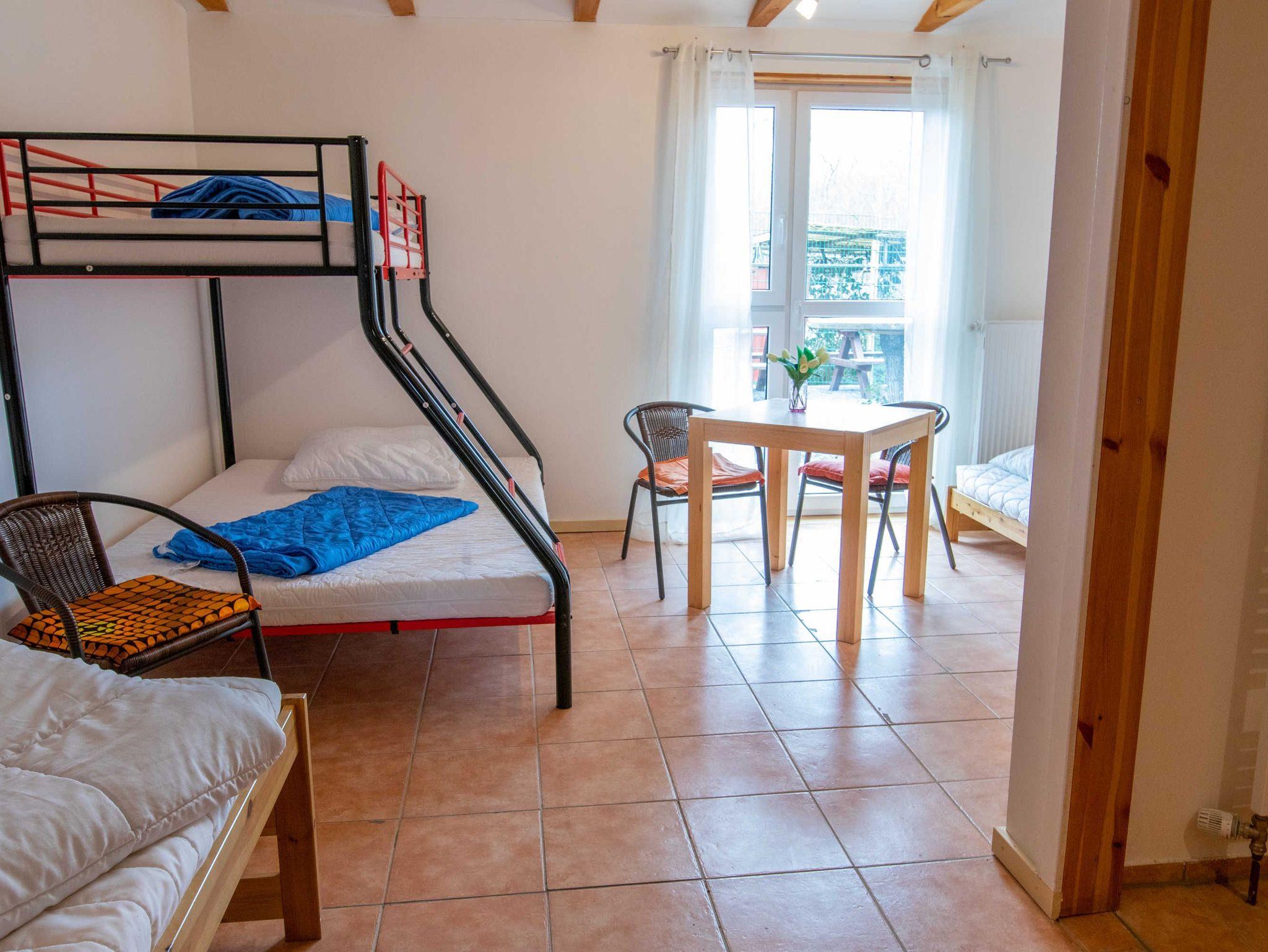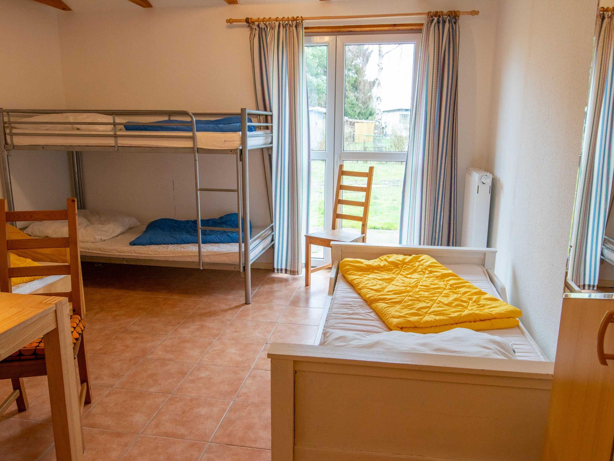 Gruppenstärkende Aktivitäten, wie zum Beispiel ein Kinder- und Jugendkochkurs in der modernen Lehrküche, die extra hierfür ausgestattet ist, können gebucht werden. Außerdem wird gemeinsames Pizza- oder Brot backen im Lehmofen, matschen mit Lehm oder Natur- und Umweltkunde direkt auf dem Gelände angeboten.Die Schlafzimmer befinden sich im neu erbauten zugehörigen Gästehaus. Die 6 hellen Mehrbettzimmer sind mit 4 bis 7 Betten und jeweils mit eigenem Bad mit Dusche und WC eingerichtet. Außerdem gibt es ein behindertengerechtes Zimmer (Zimmer 3) mit rollstuhlgerechtem Badezimmer, welches mit einer befahrbaren Dusche, Duschsitz, Waschbecken und WC eingerichtet ist. Die Heizung-Warmwasserversorung wird durch eine Solaranlage und ein Kamin unterstützt. Auf dem Grundstück stehen ausreichend Parkplätze zur Verfügung.