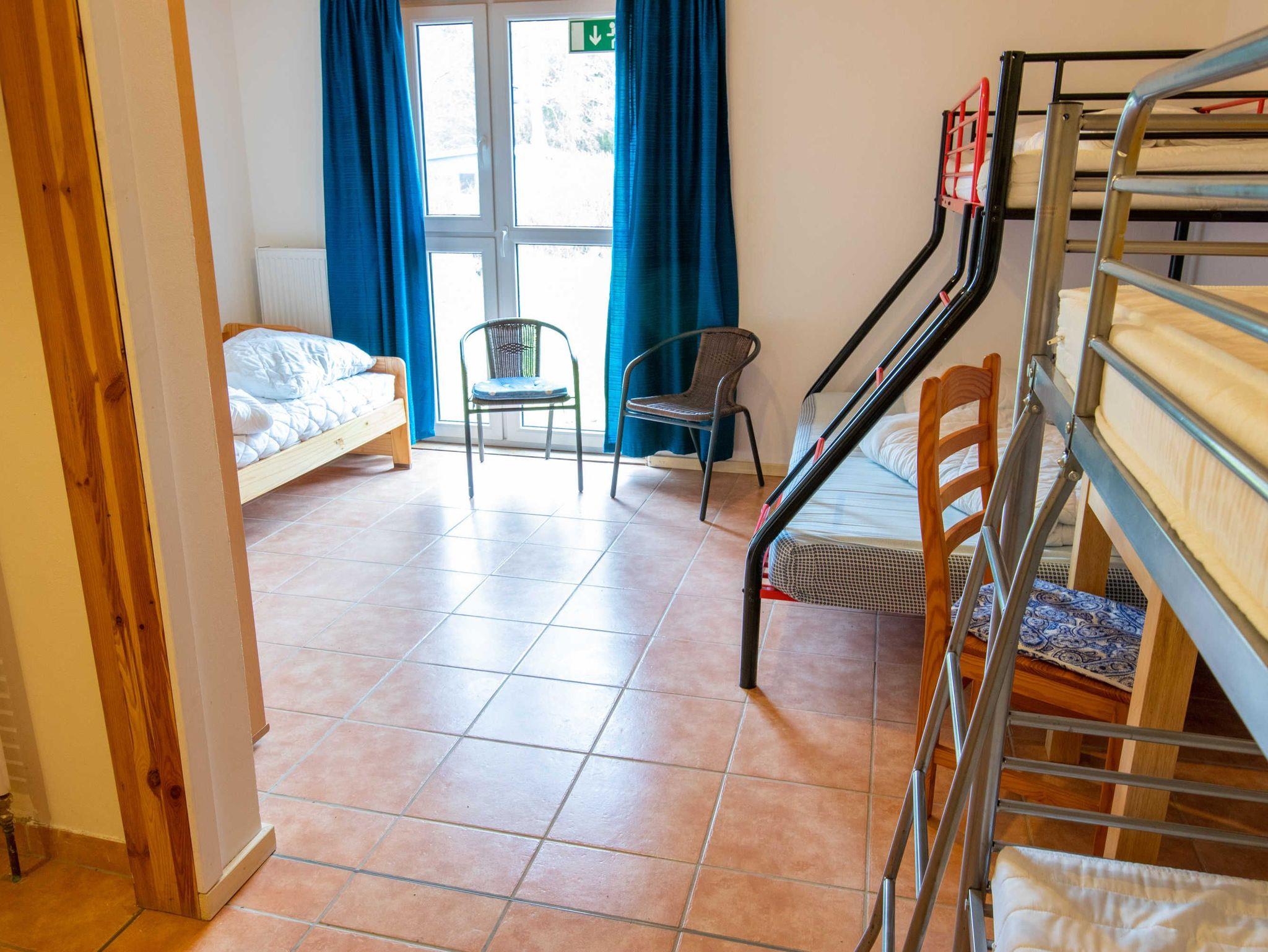 Das ebenerdige 170 m² große Ferienhaus besteht aus einem neu erbautem Gästehaus mit 6 hellen Mehrbettzimmern mit bis zu 7 Betten, jeweils mit eigenem Bad mit Dusche und WC, sowie einem 80m² großen Gruppenraum mit Platz für 30 Personen für Projektarbeiten und gemeinsames Essen im Haupthaus. Die Küche ist voll ausgestattet u.a. mit Kühl-Gefriermöglichkeit, 4-Platten-Herd, Backofen, Geschirrspüler, Besteck, Geschirr und Töpfe. Das Haupthaus und der Neubau sind miteinander verbunden.Das Ferienhaus bietet sich perfekt für Klassenfahrten oder Schulausflüge an.