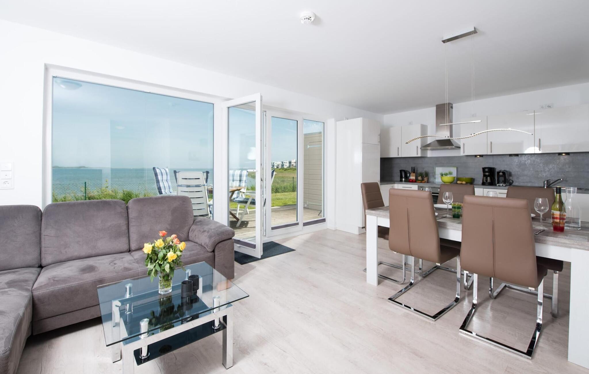 Modern eingerichtet und offen gestaltet, überzeugt die Ferienwohnung Sternschnuppe, mit einem freien Blick auf die Schlei aus dem gesamten Wohn- und Essbereich. Bodentiefe Fenster, hin zur Panorama-Wasserfront und vorbeifahrenden Segelbooten, machen hier Urlaubsträume wahr. Die offene und hochwertig ausgestattete Küche erfüllt alle Wünsche. Der Esstisch und die komfortable Sitzgruppe mit Wasserblick laden zum Entspannen und Träumen ein.