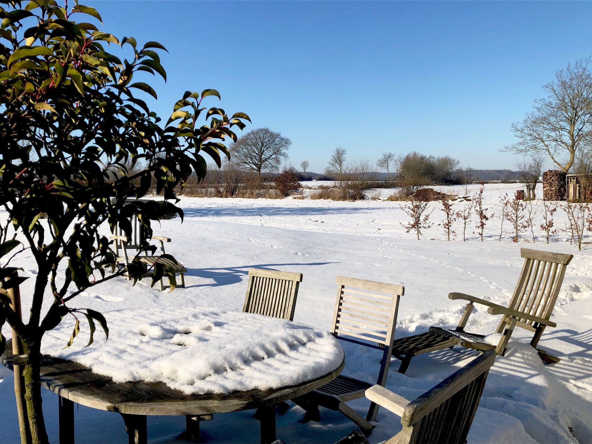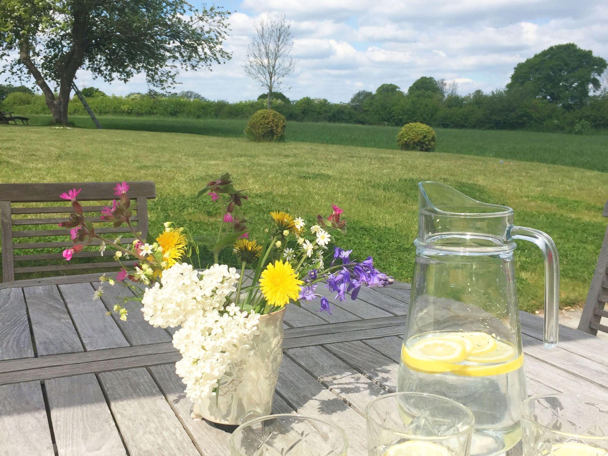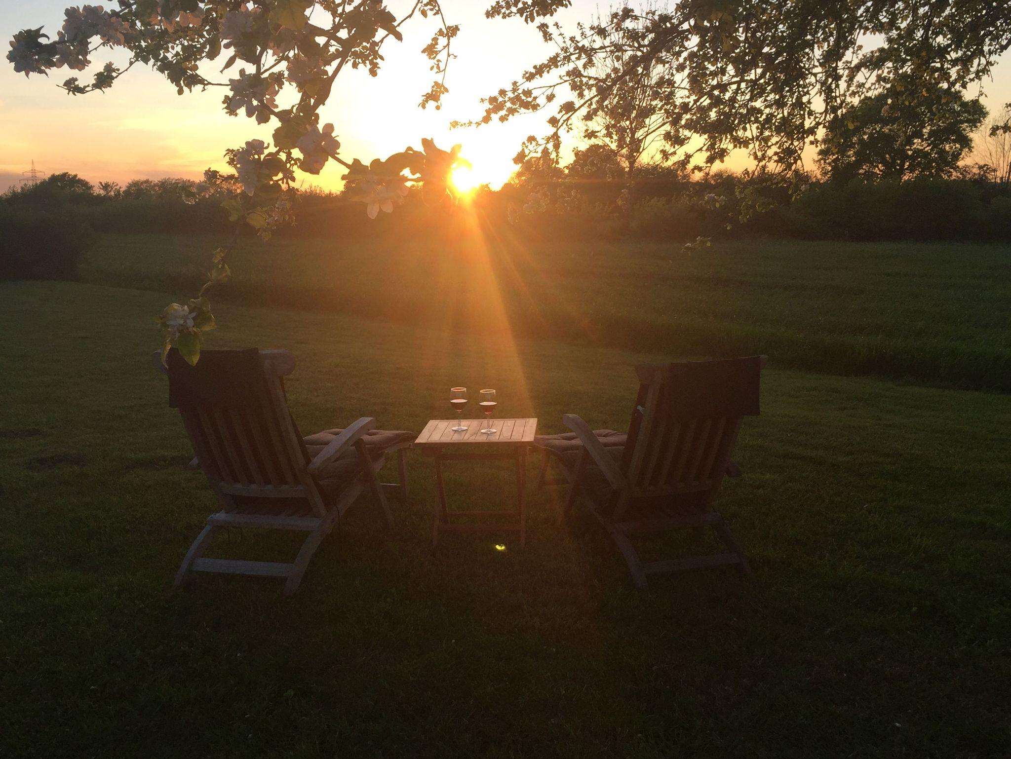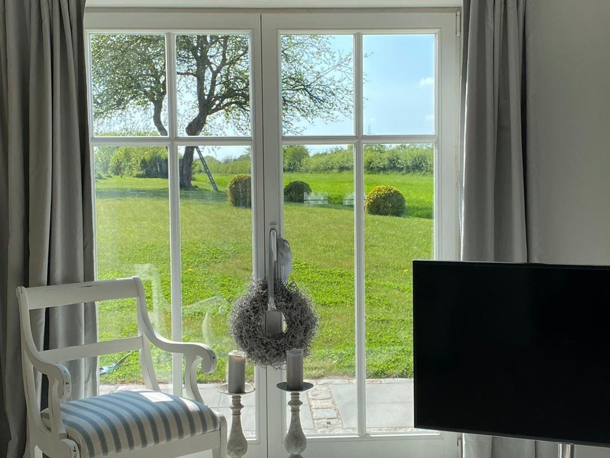 Das Haus hat ein Schlafzimmer mit Doppelbett (180cm x 200cm) im Erdgeschoss und ein weiteres Schlafzimmer mit zwei Einzelbetten im 1. Obergeschoss und bietet Platz für 2 - 4 Personen. Es verfügt über eine offene Landhausküche mit allem Komfort und einem angrenzenden Essbereich. Von dort aus gelangt man in den Wohnbereich mit gemütlichem Sofa und Kamin. Die offene Galerie zum Obergeschoss gibt dem Haus ein großzügiges Wohngefühl. Das luxuriöse Badezimmer liegt ebenerdig mit Blick in den Garten und verfügt über WC, Waschtisch, eine ebenerdig begehbaren Dusche, Handtuchwärmer, Föhn und Waschmaschine. Das Haus ist durch seine vielen, zum Teil bodentiefen Fenster sehr hell und wird von Sonnenaufgang bis Sonnenuntergang von der Sonne durchflutet. Über die großzügige Terrasse gelangt man in den Garten, in dessen Zentrum der große Apfelbaum Schatten spendet.