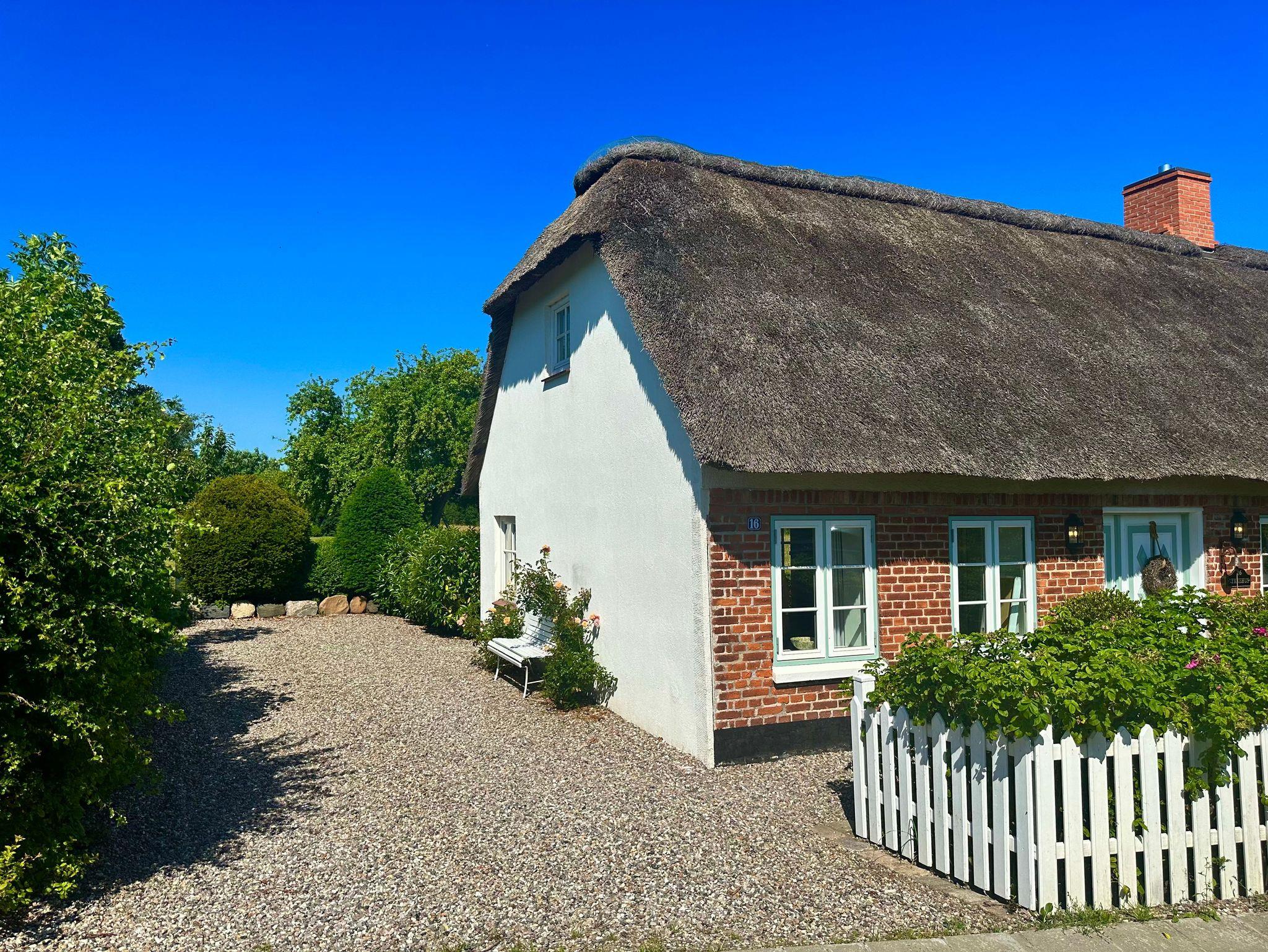 Das Lykkehus ist eine historische Reetdach-Kate mit ca. 120m² Wohnfläche, die von Grund auf renoviert wurde. Die Grundmauern stammen aus dem Jahre 1784. Es steht auf einem 1.200m² großen Grundstück mit einem traumhaften Blick über die umgebenden Felder.