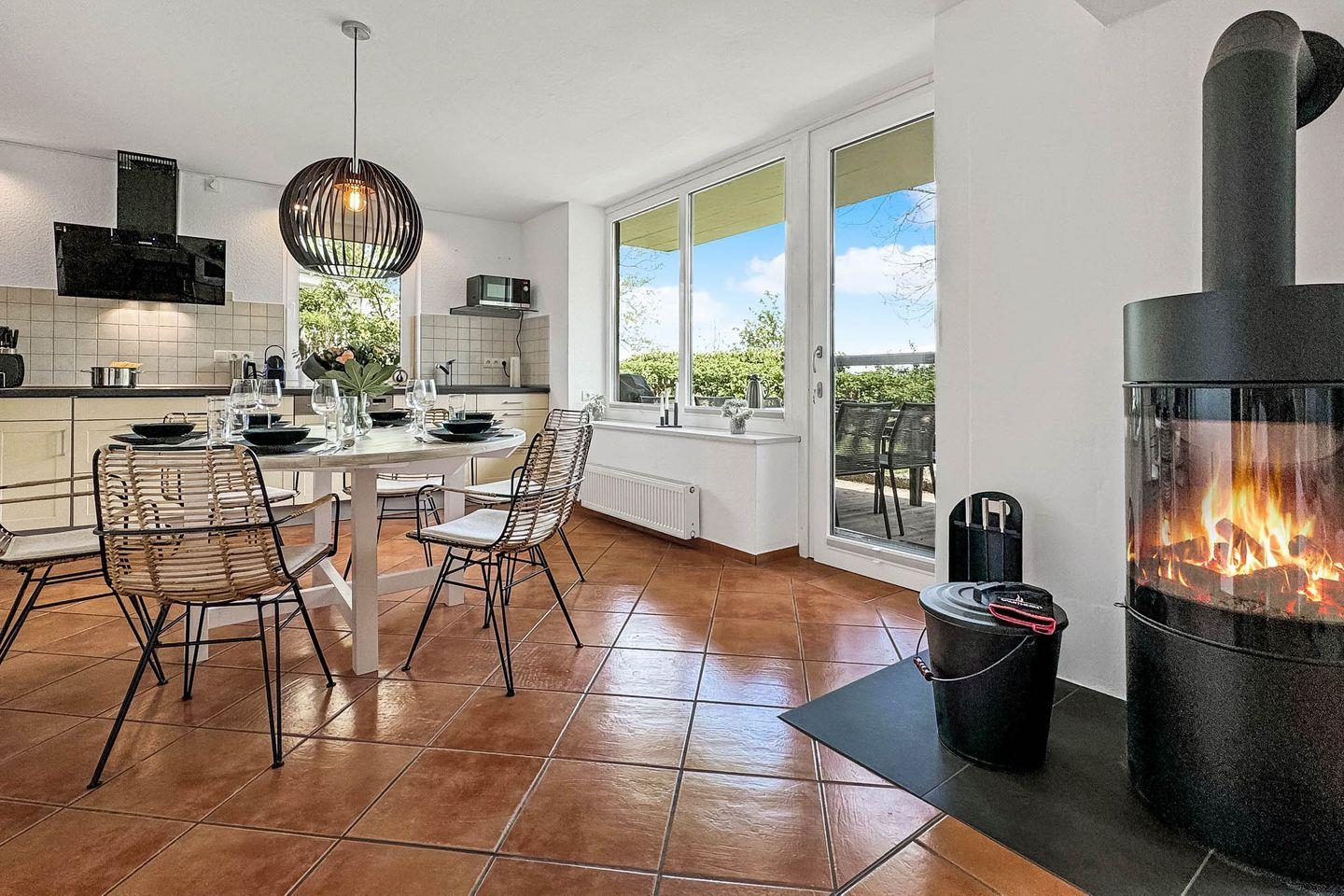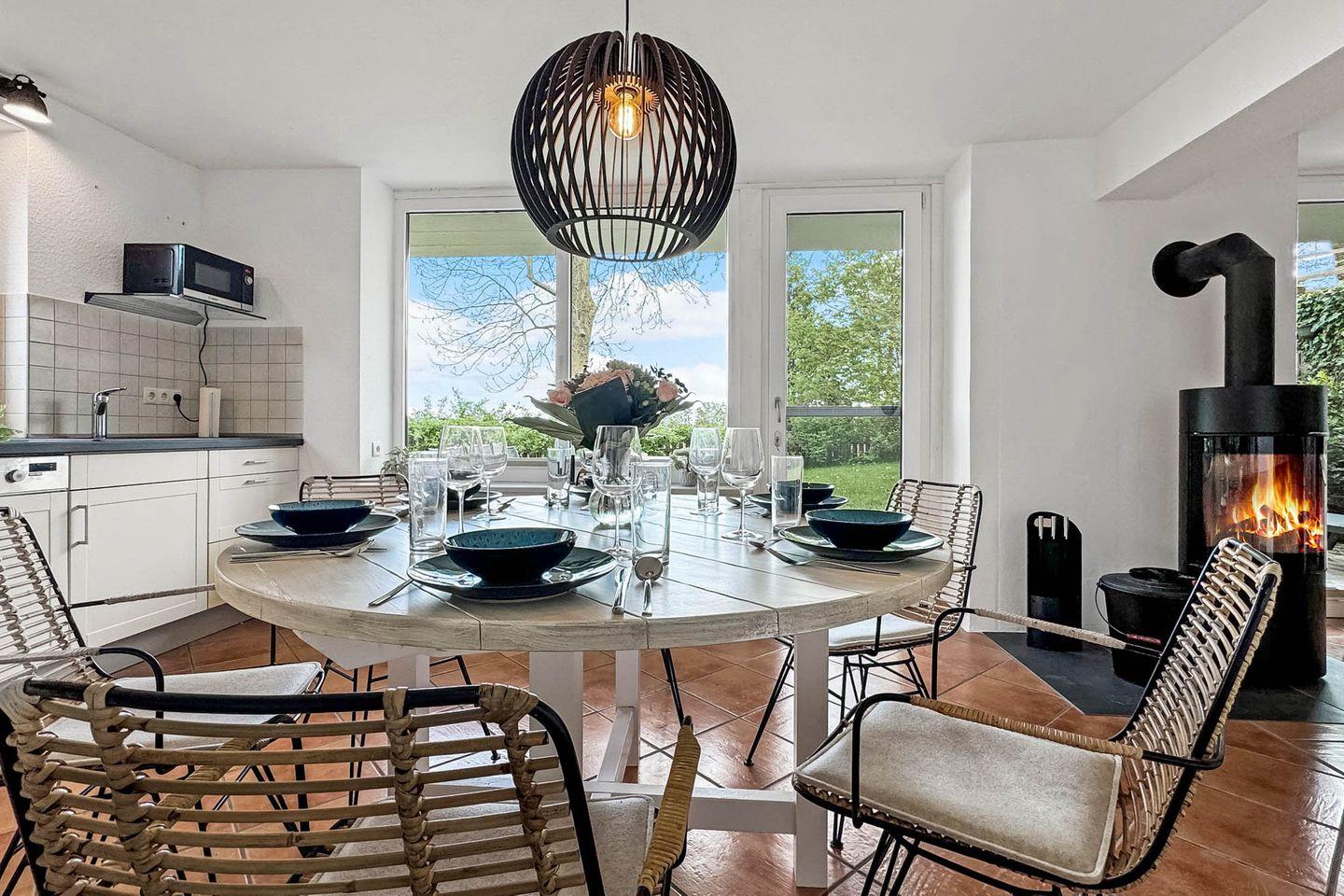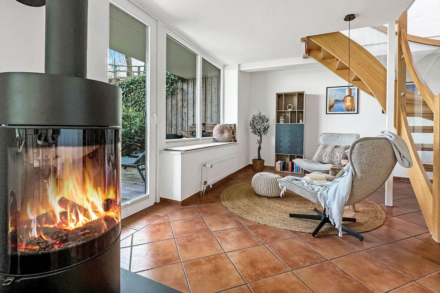 Und wenn es draußen norddeutsch frisch wird, sorgt der Kaminofen für extra Gemütlichkeit.